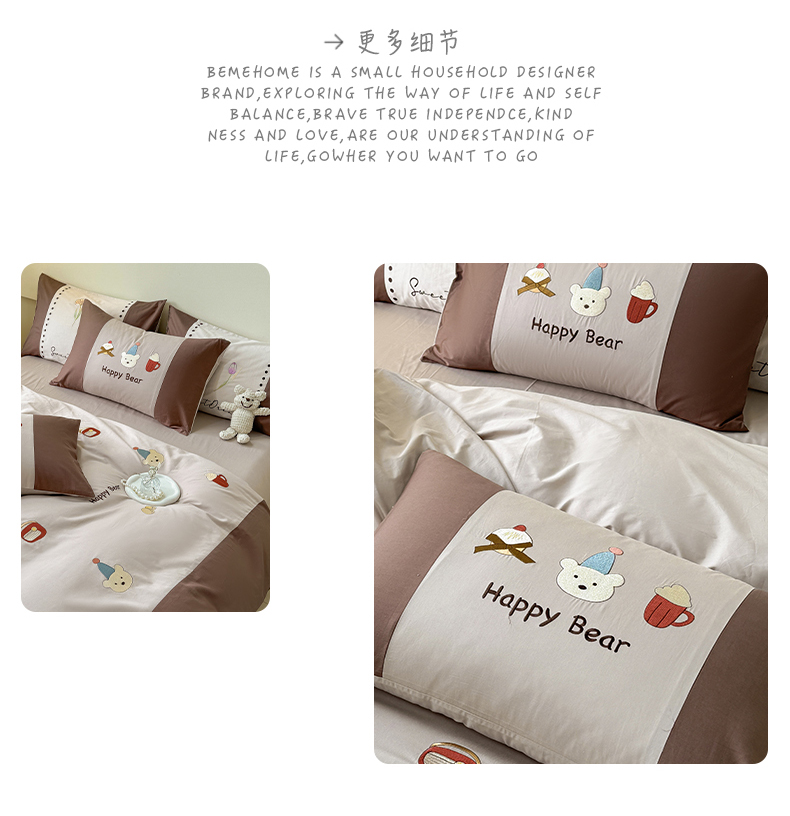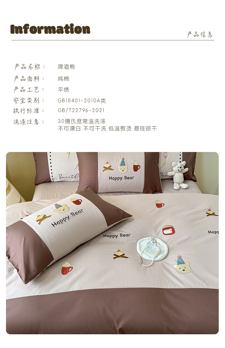 商品名称:波比可可 2026新款全棉纯棉可爱刺绣四件套 啤酒熊