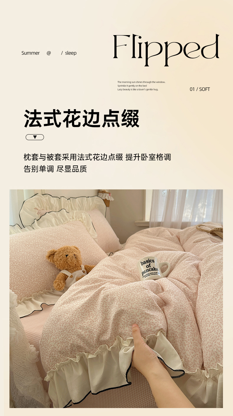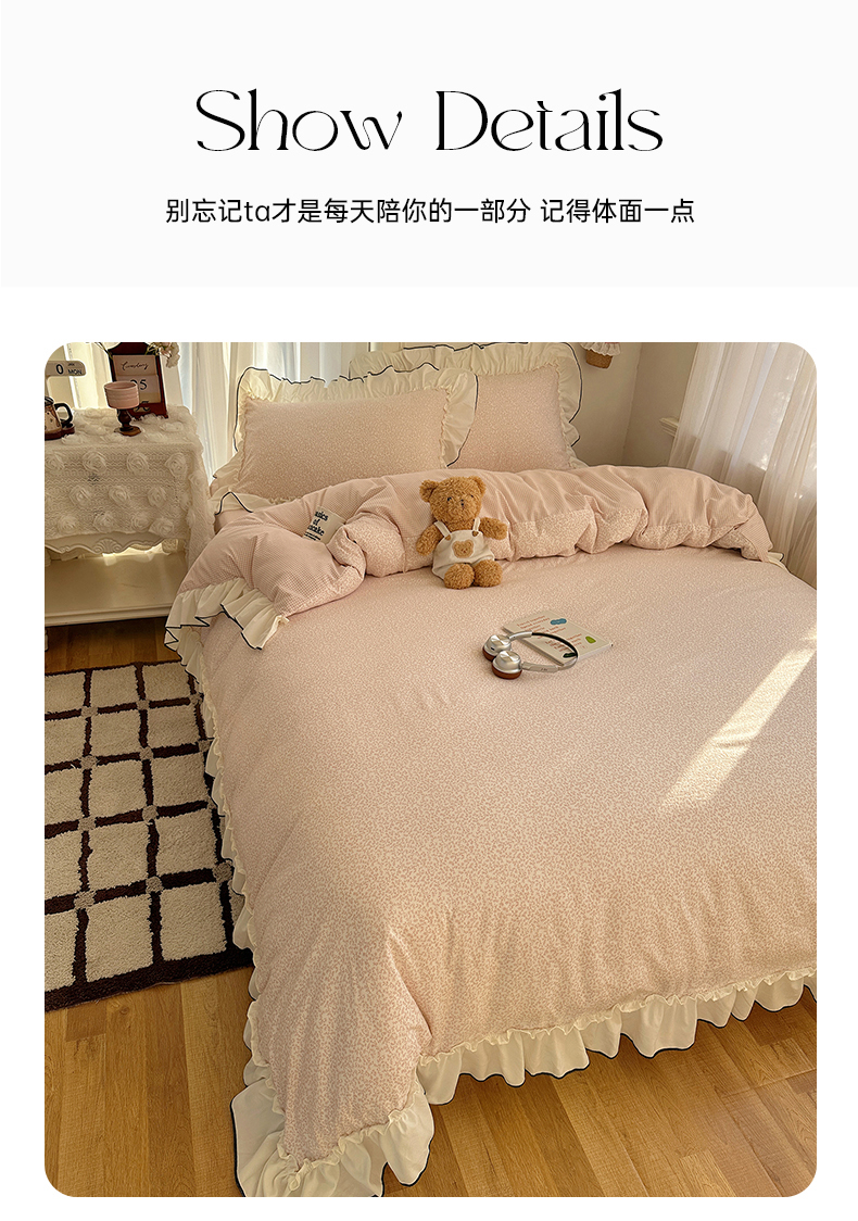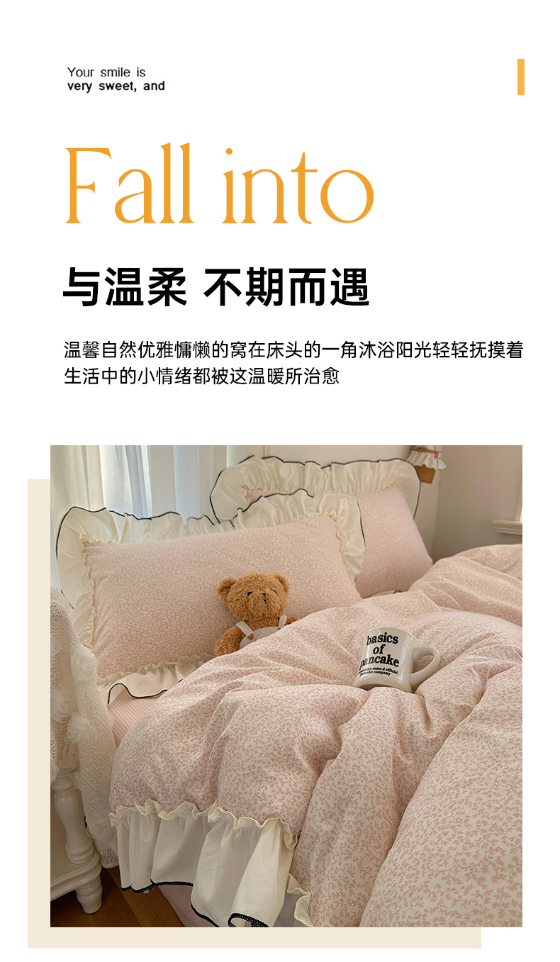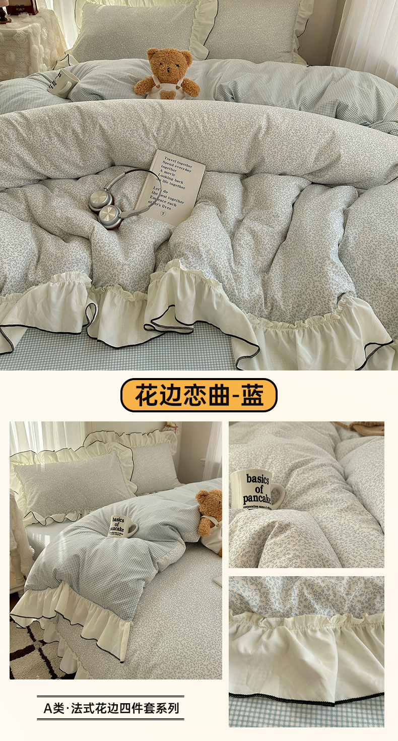 当前位置: 91家纺网 > 商品网购 > 床品套件 > 四件套 > 其它四件套 > 沐芷 2026 【提供买家秀】法式风花边四件套A类仿棉 简约小清新床上用品被罩被套 花边恋曲-玉