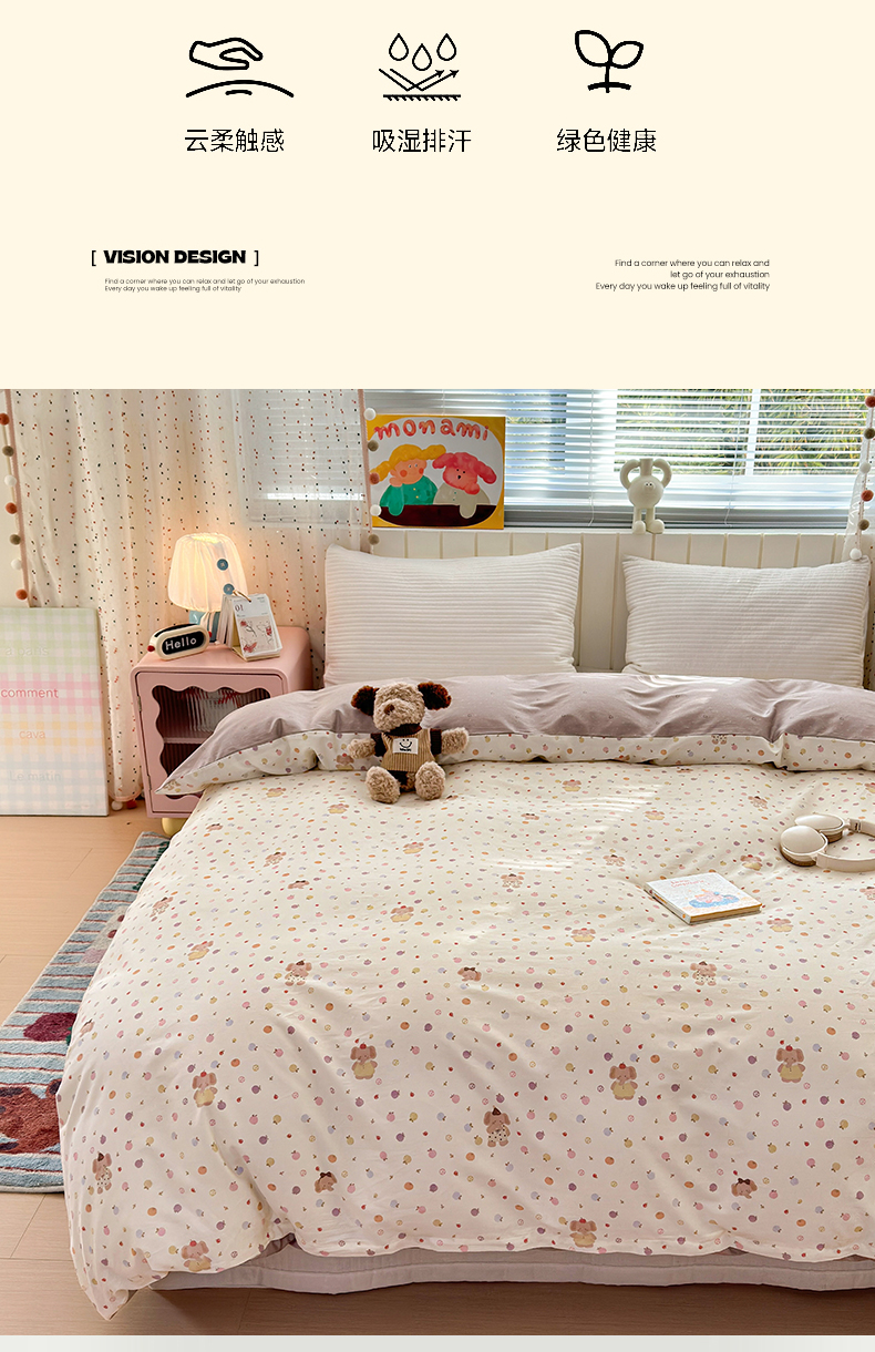 • 91家纺网 家纺一手货源 找家纺 (总)梵克保罗 2026春夏新款ins小清新40支全棉13372四件套学生三件套单被套单枕套系列-第三批(四件套),告白兔,科罗娜,栗子狗,麦克狮,千代-兰,小象之家-粉,小象之家-兰,摘星小熊,QQ乐园
