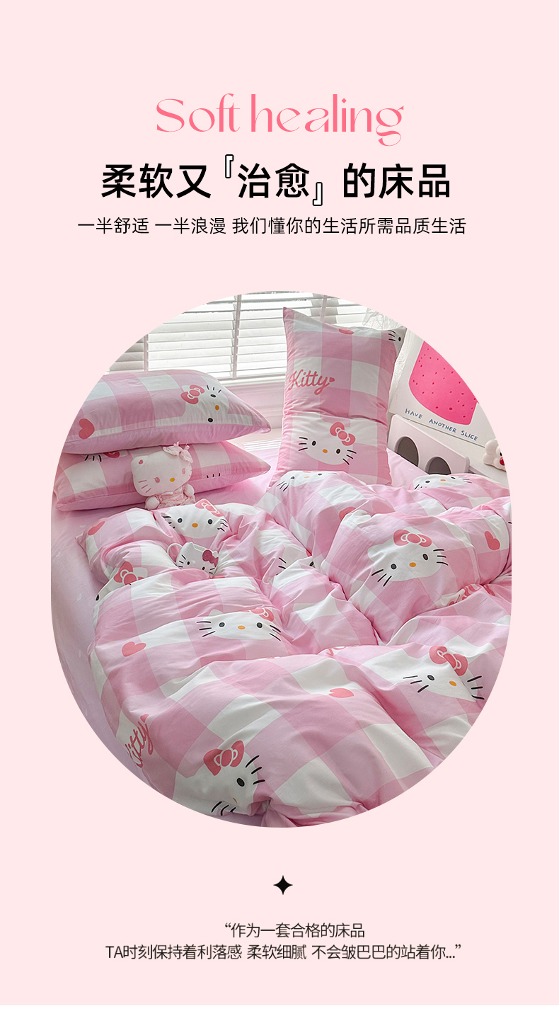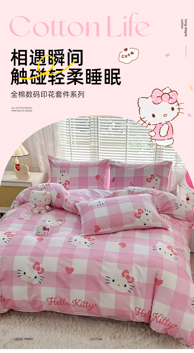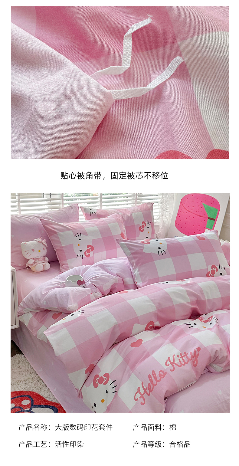 当前位置: 91家纺网 > 商品网购 > 床品套件 > 四件套 > 全棉普通四件套 > 玉元坊 2026新款正版授权三丽鸥系列全棉纯棉床单四件套学生三件套-凯蒂猫系列 告白KT猫【简约款】