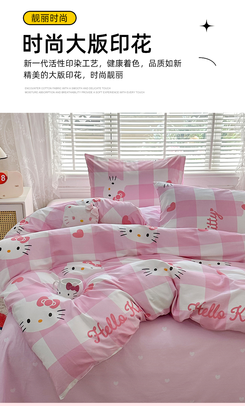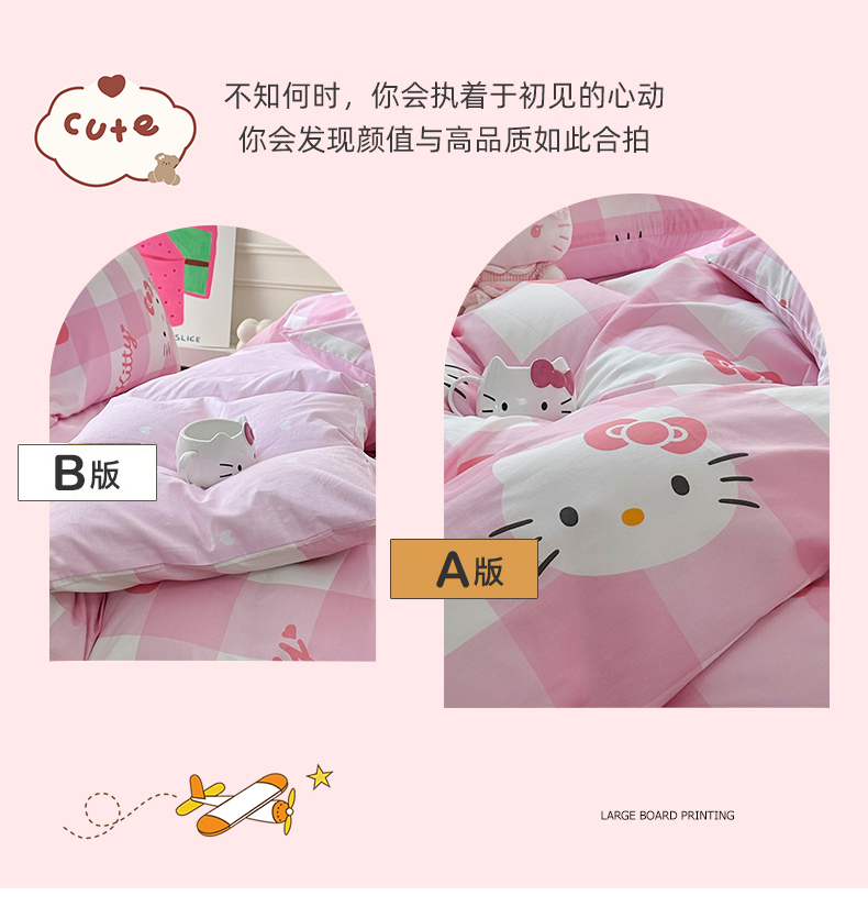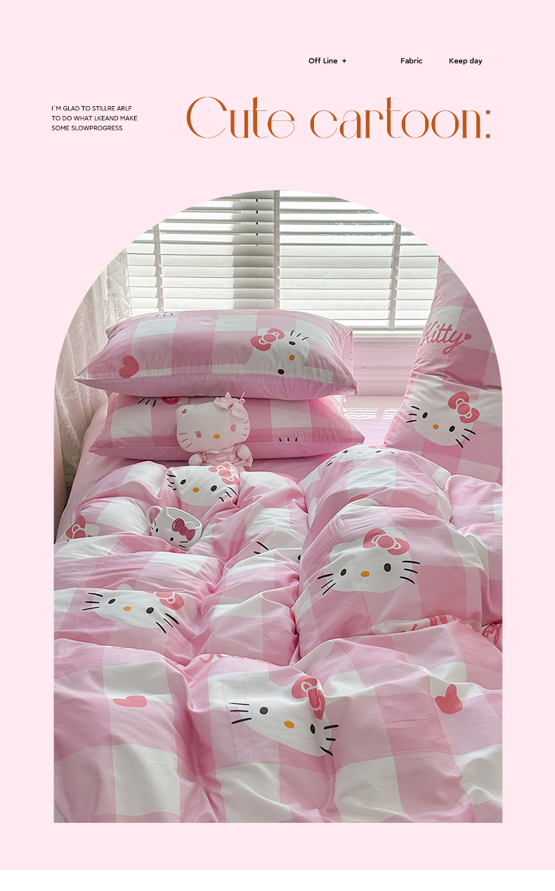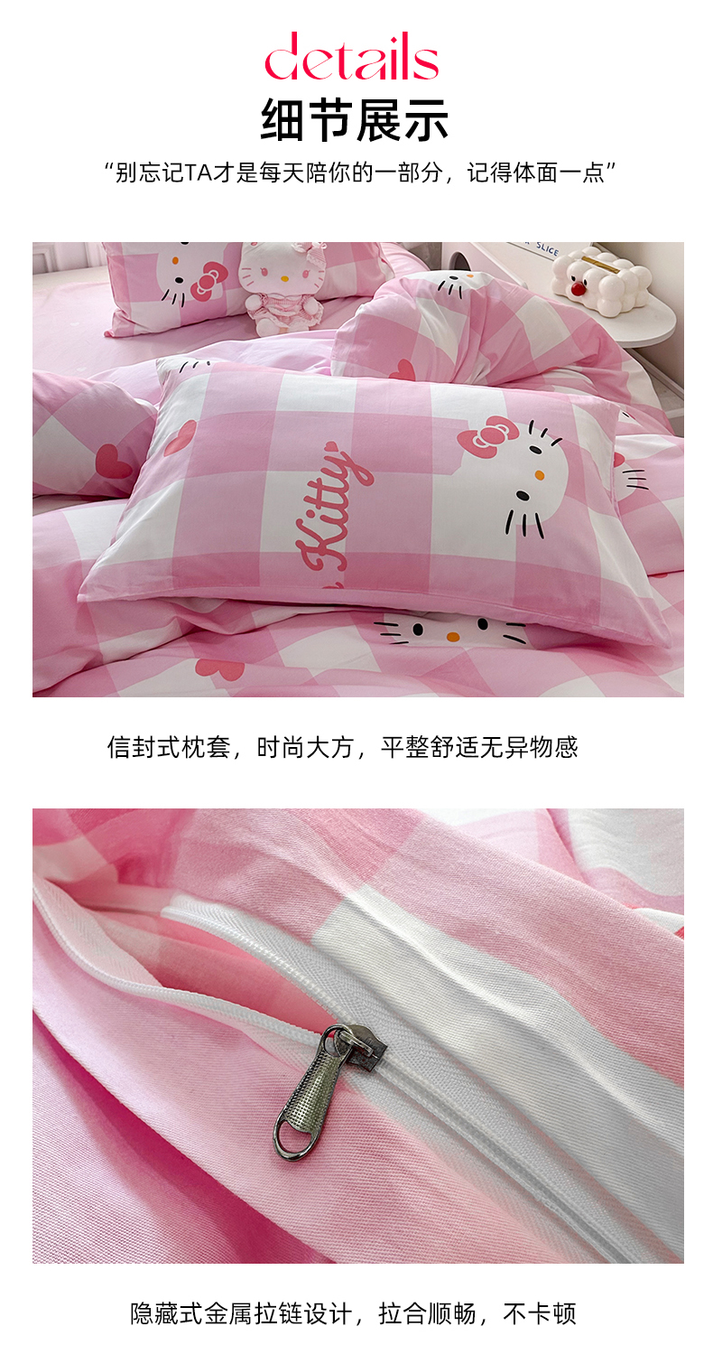 当前位置: 91家纺网 > 商品网购 > 床品套件 > 四件套 > 全棉普通四件套 > 玉元坊 2026新款正版授权三丽鸥系列全棉纯棉床单四件套学生三件套-凯蒂猫系列 告白KT猫【简约款】