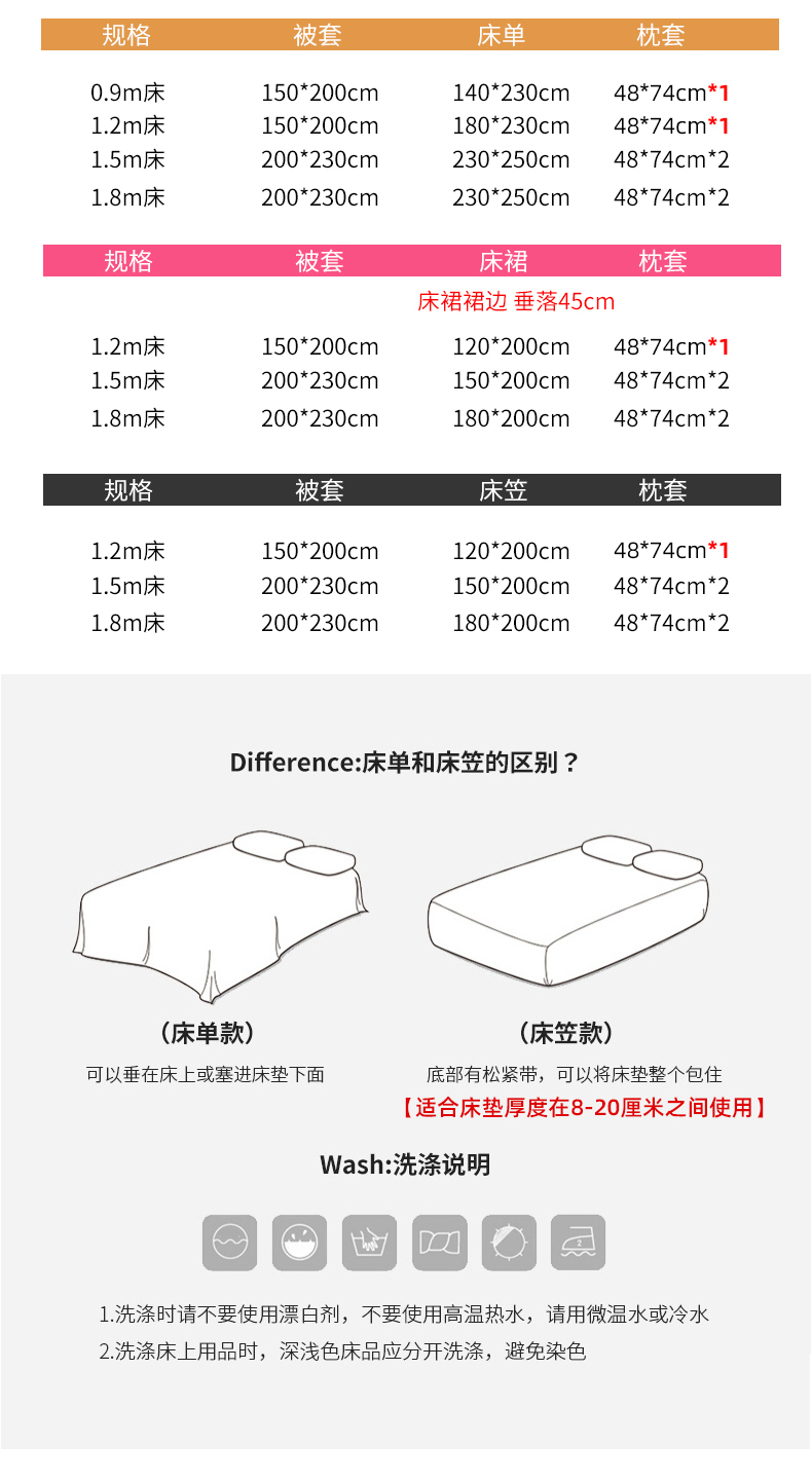 1.2m床笠三件套被套160*210 | ¥95.00 |