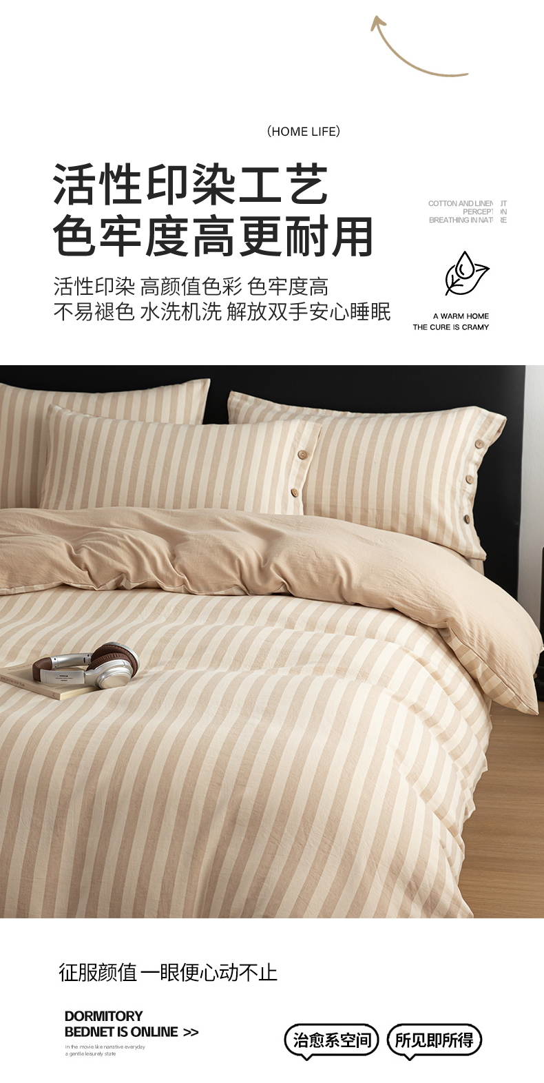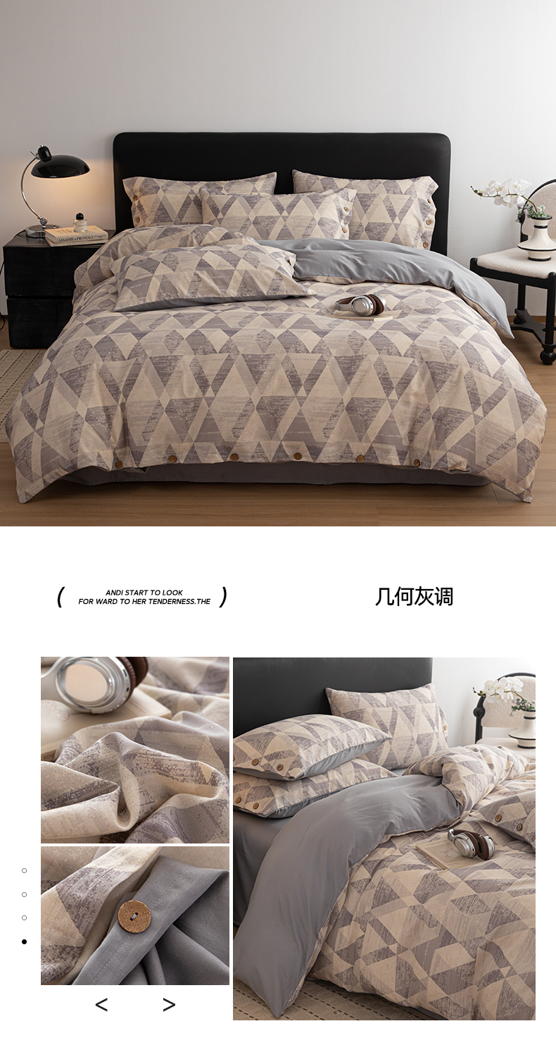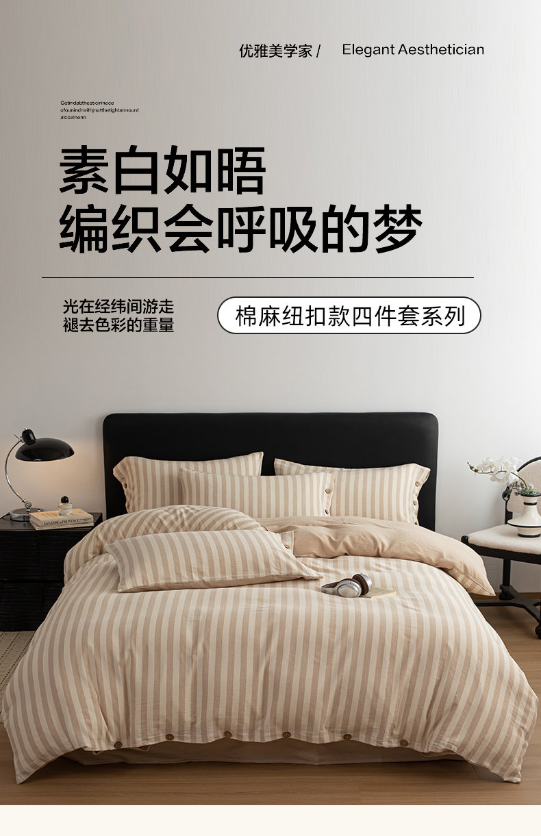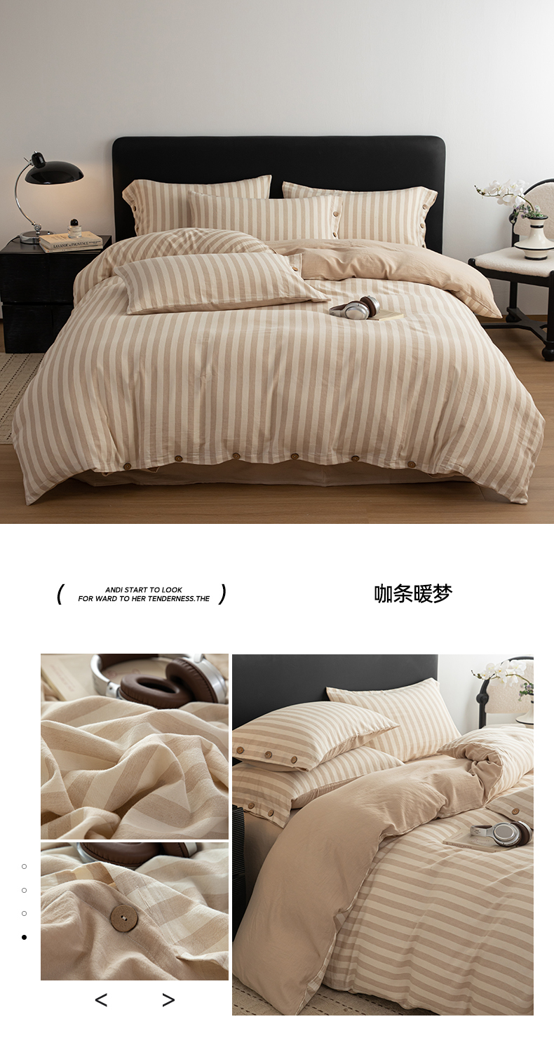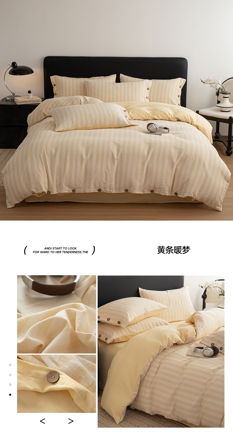 商品名称:(总)女子家纺 2026新款A类棉麻纽扣款四件套--条纹格子系列