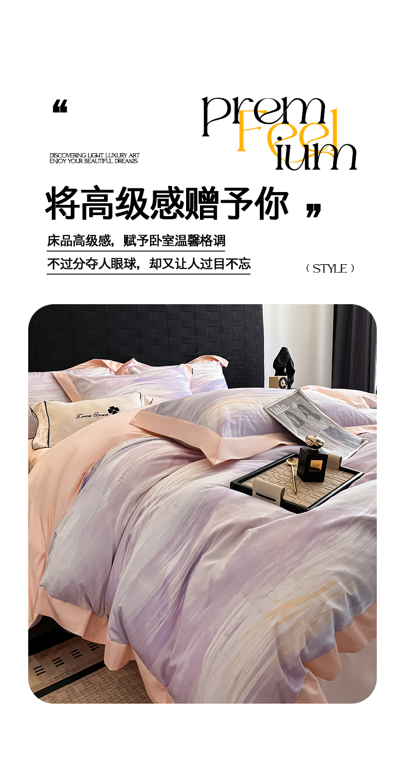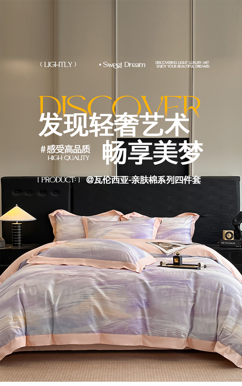 当前位置: 91家纺网 > 商品网购 > 床品套件 > 四件套 > 化纤普通四件套 > 置顶家纺 2026春夏新款数码印花亲肤棉系列四件套-瓦伦西亚 瓦伦西亚-香芋紫