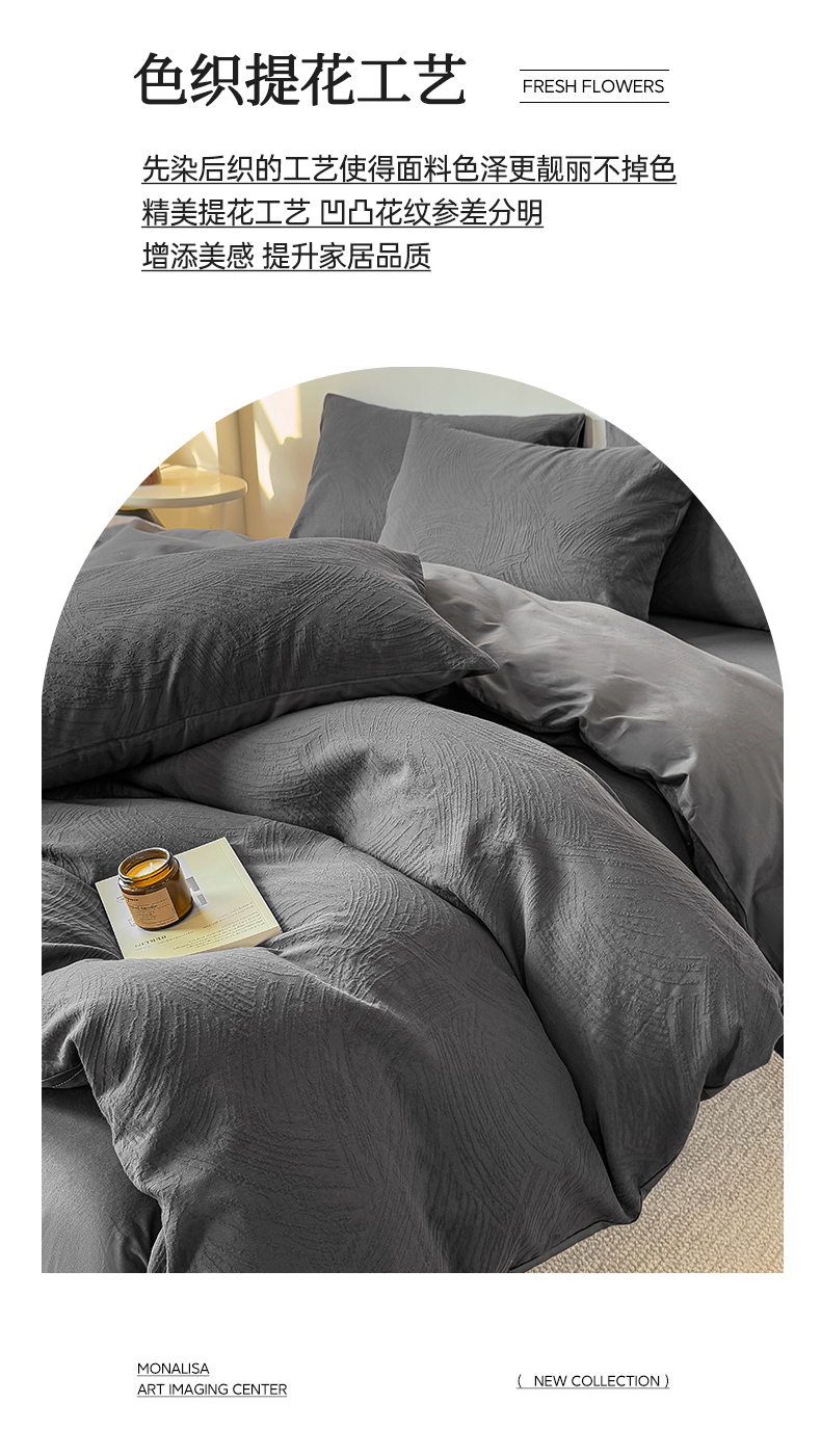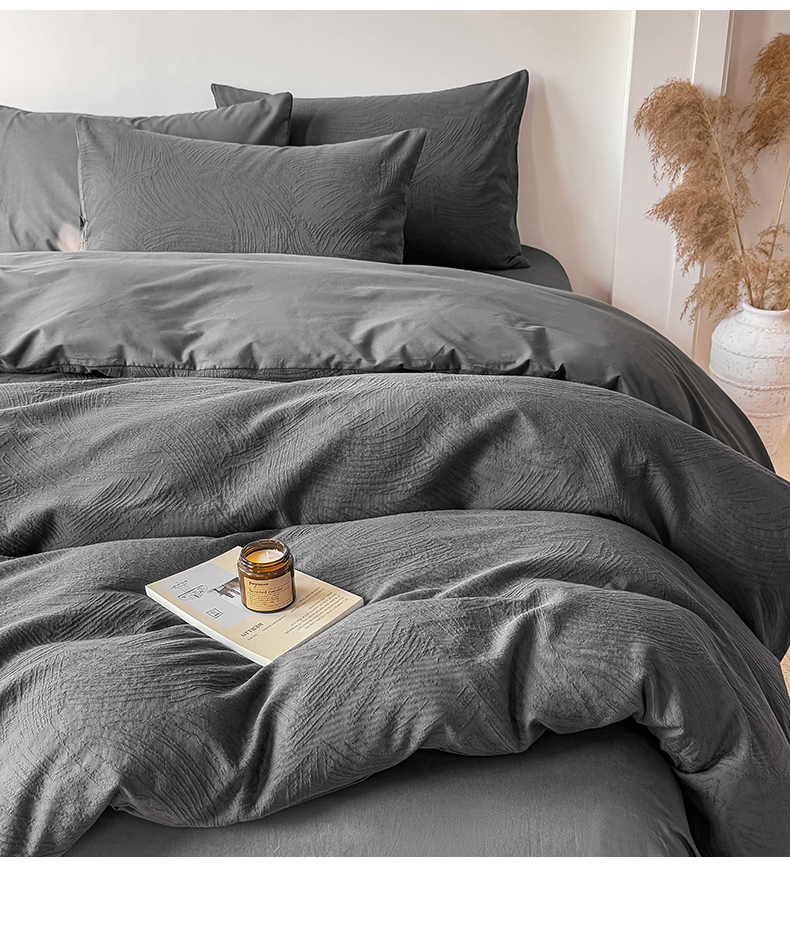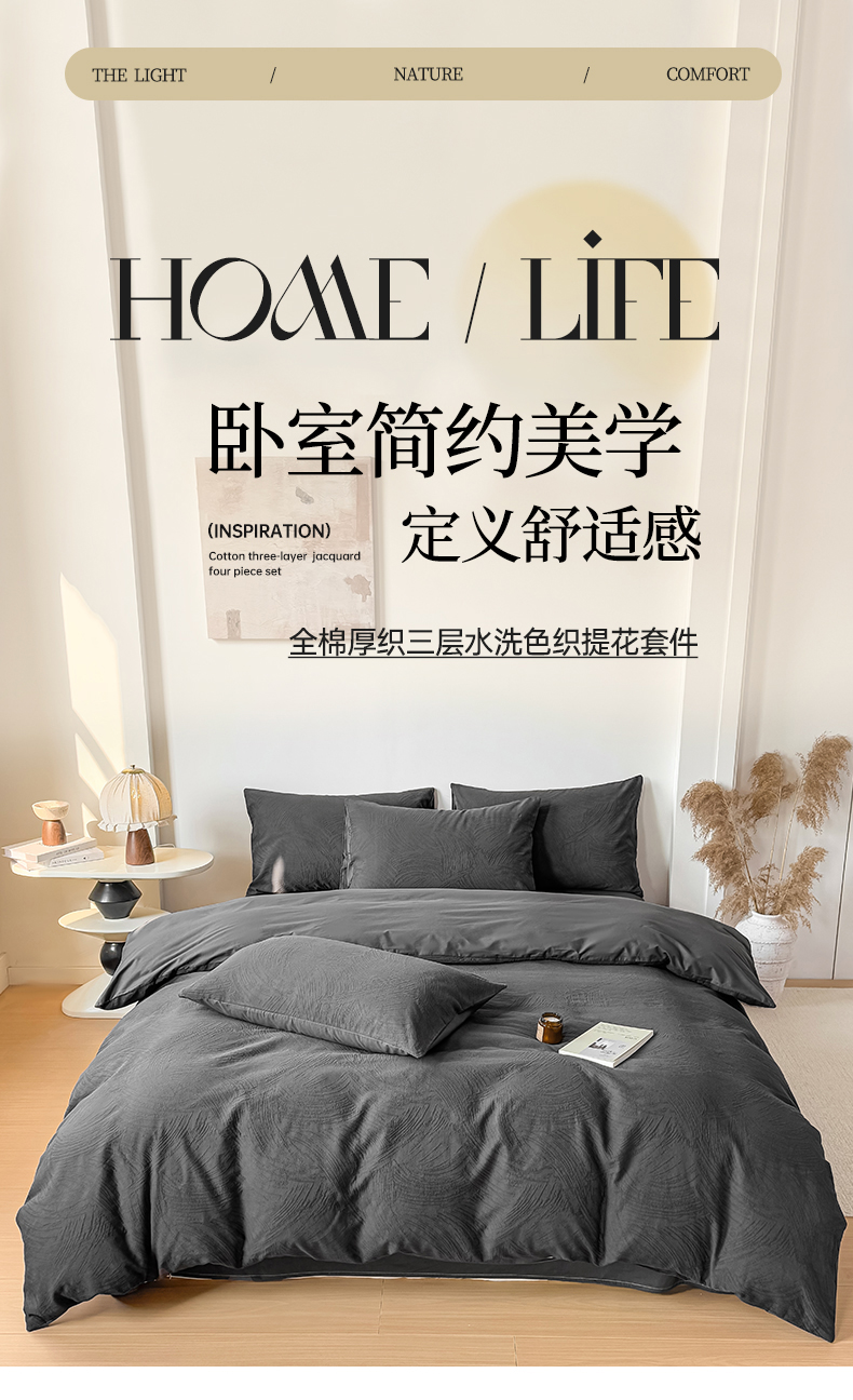 当前位置: 91家纺网 > 商品网购 > 床品套件 > 四件套 > 全棉普通四件套 > 灰鲸 2026新款全棉纯棉厚织三层水洗色织提花四件套 柔丝漫语-素墨