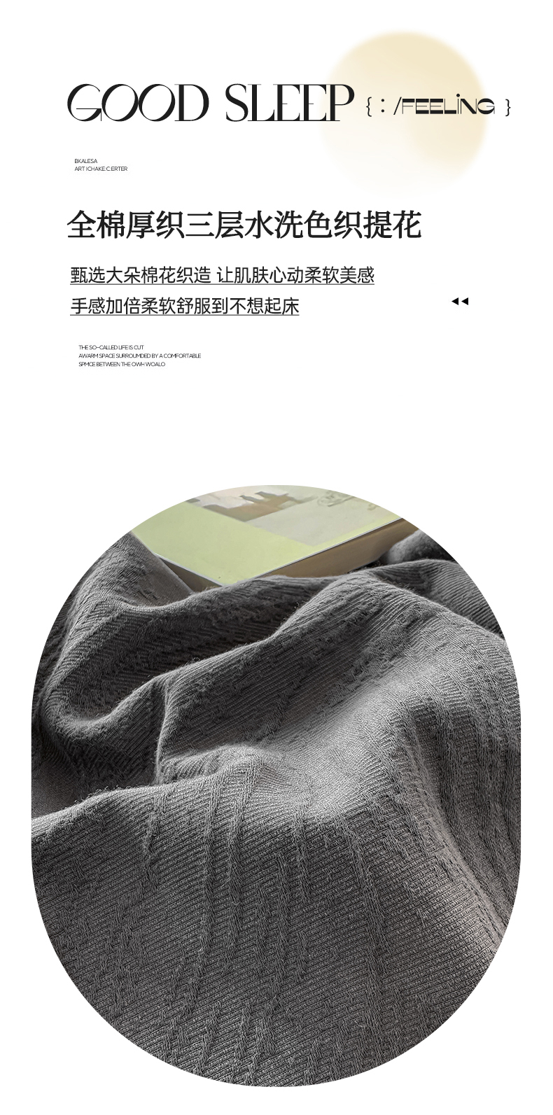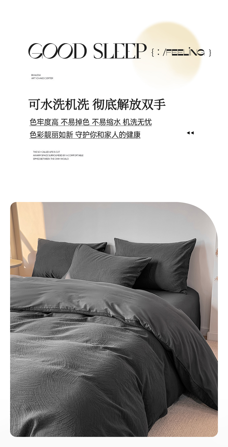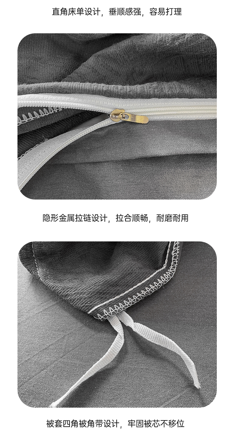 当前位置: 91家纺网 > 商品网购 > 床品套件 > 四件套 > 全棉普通四件套 > 灰鲸 2026新款全棉纯棉厚织三层水洗色织提花四件套 柔丝漫语-素墨