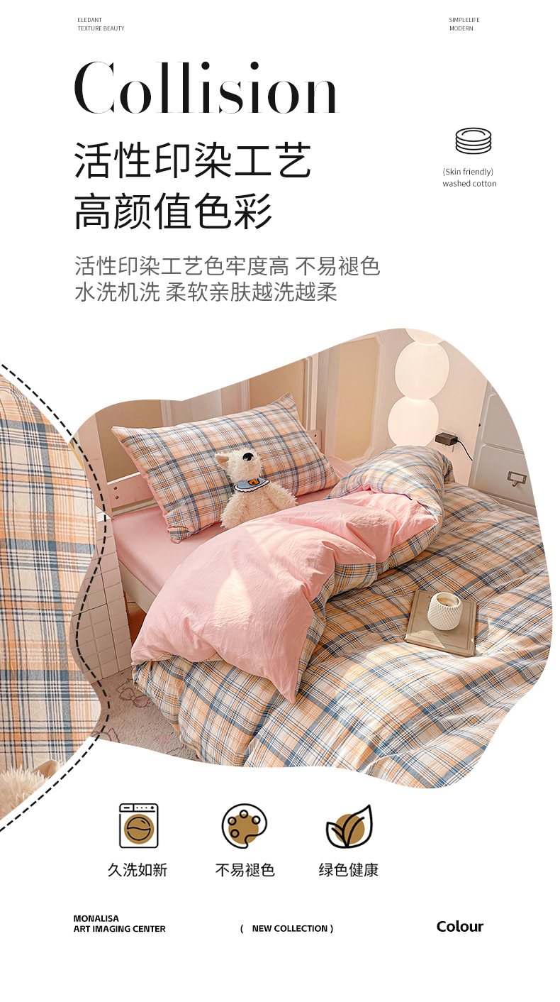 当前位置: 91家纺网 > 商品网购 > 床品套件 > 四件套 > 水洗棉四件套 > 纽缦家纺 2026新款水洗棉简约格子风学生床套件系列 淡香-绿