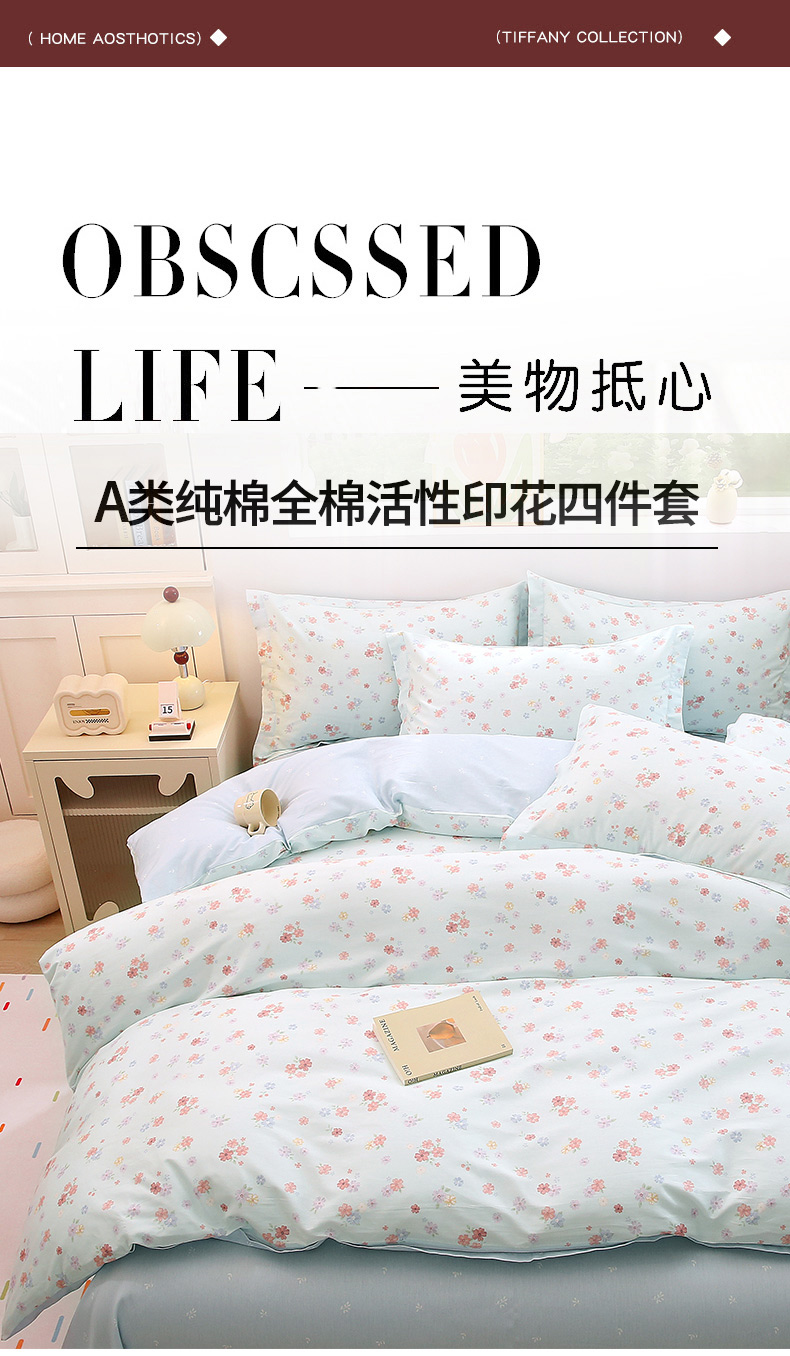 当前位置: 91家纺网 > 商品网购 > 床品套件 > 四件套 > 全棉普通四件套 > 织写 2026新款A类 四件套纯棉全棉12868 预留缩水尺寸 流绪微梦-蓝