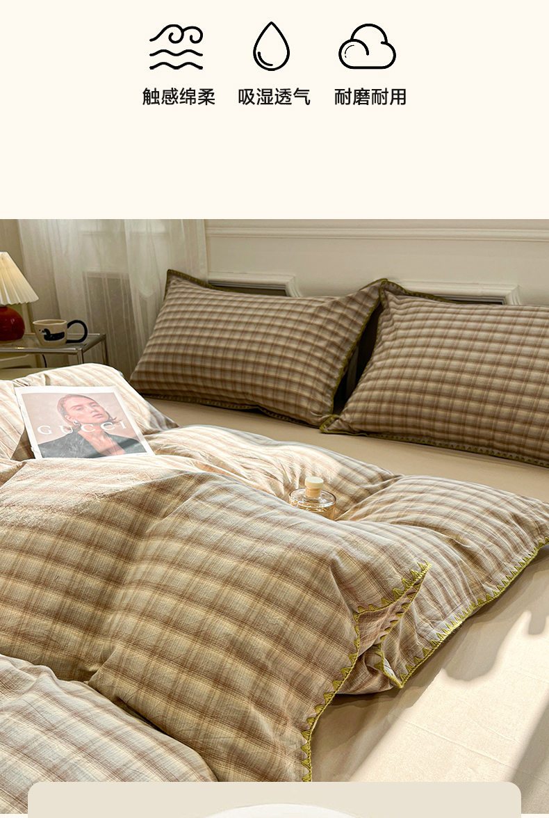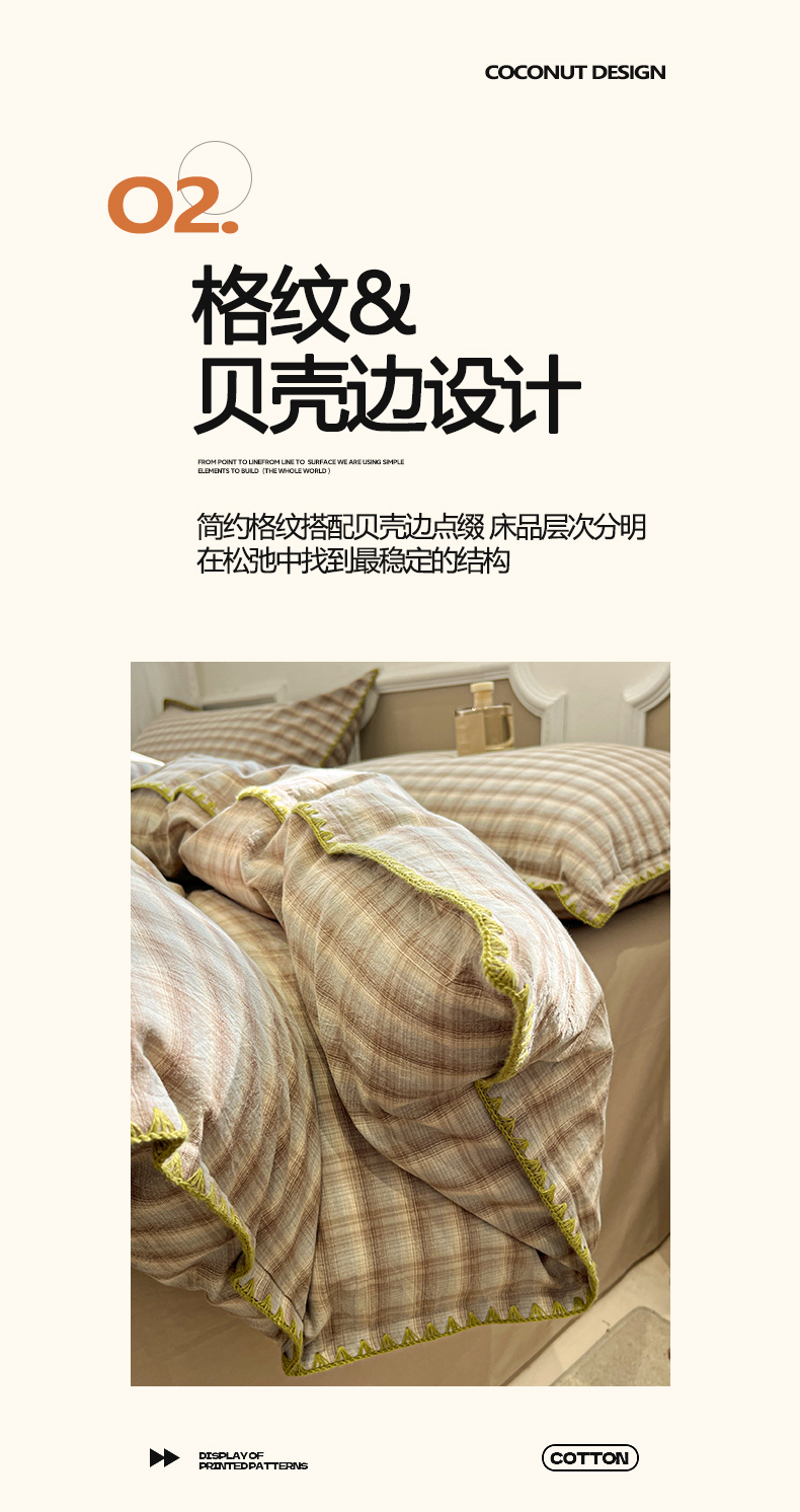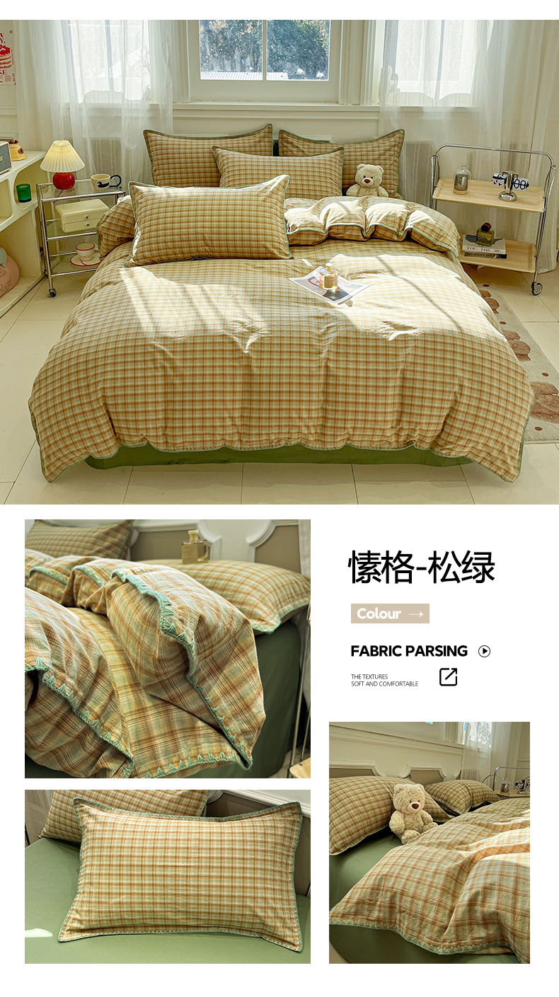 商品名称:(总)莱茵家居 2026新款A类全棉色织水洗棉格子贝壳边套件-愫格系列