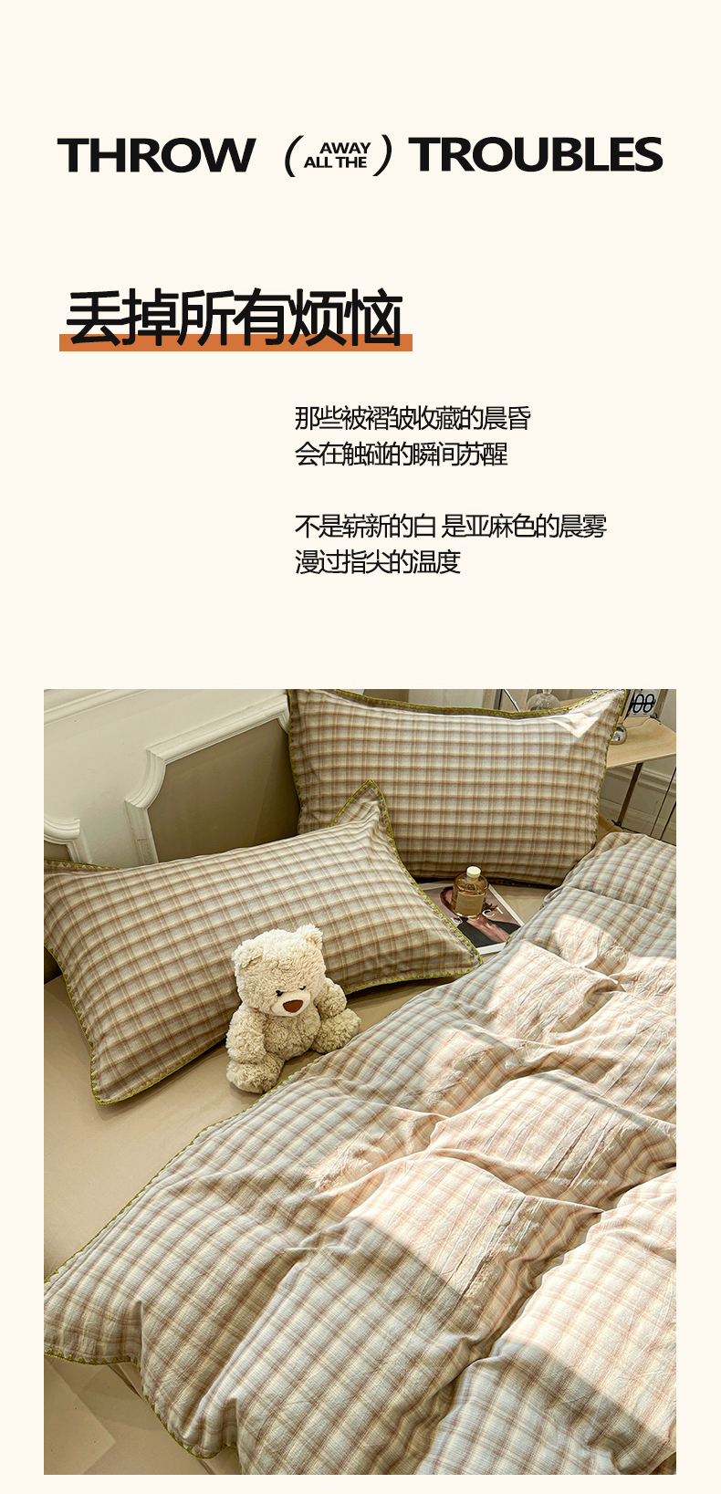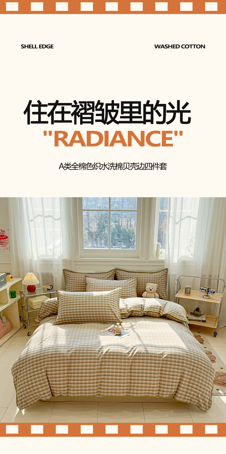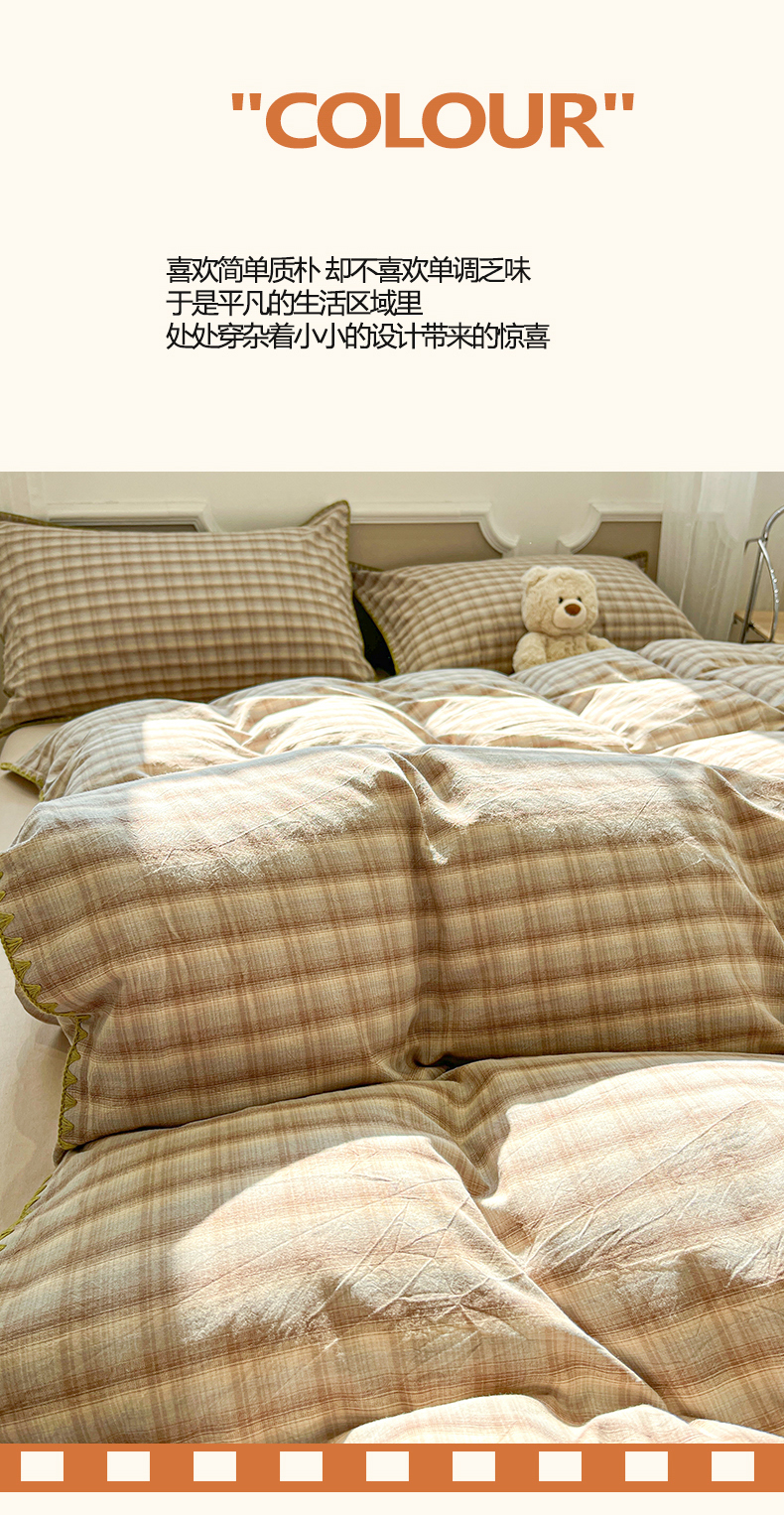 商品名称:(总)莱茵家居 2026新款A类全棉色织水洗棉格子贝壳边套件-愫格系列