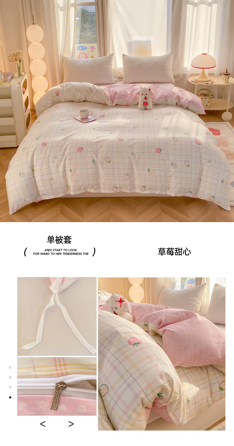 当前位置: 91家纺网 > 商品网购 > 床上用品 > 被套 > 朵安家纺 2026春夏新款12868全棉纯棉斜纹印花单被套 被套单件 草莓甜心