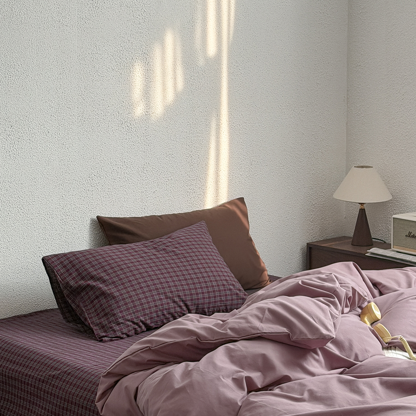 当前位置: 91家纺网 > 商品网购 > 床品套件 > 四件套 > 全棉普通四件套 > 蜜宿 2026新款全棉40s水洗棉四件套-紫雾海 紫雾海(枕套格纹+可可棕)