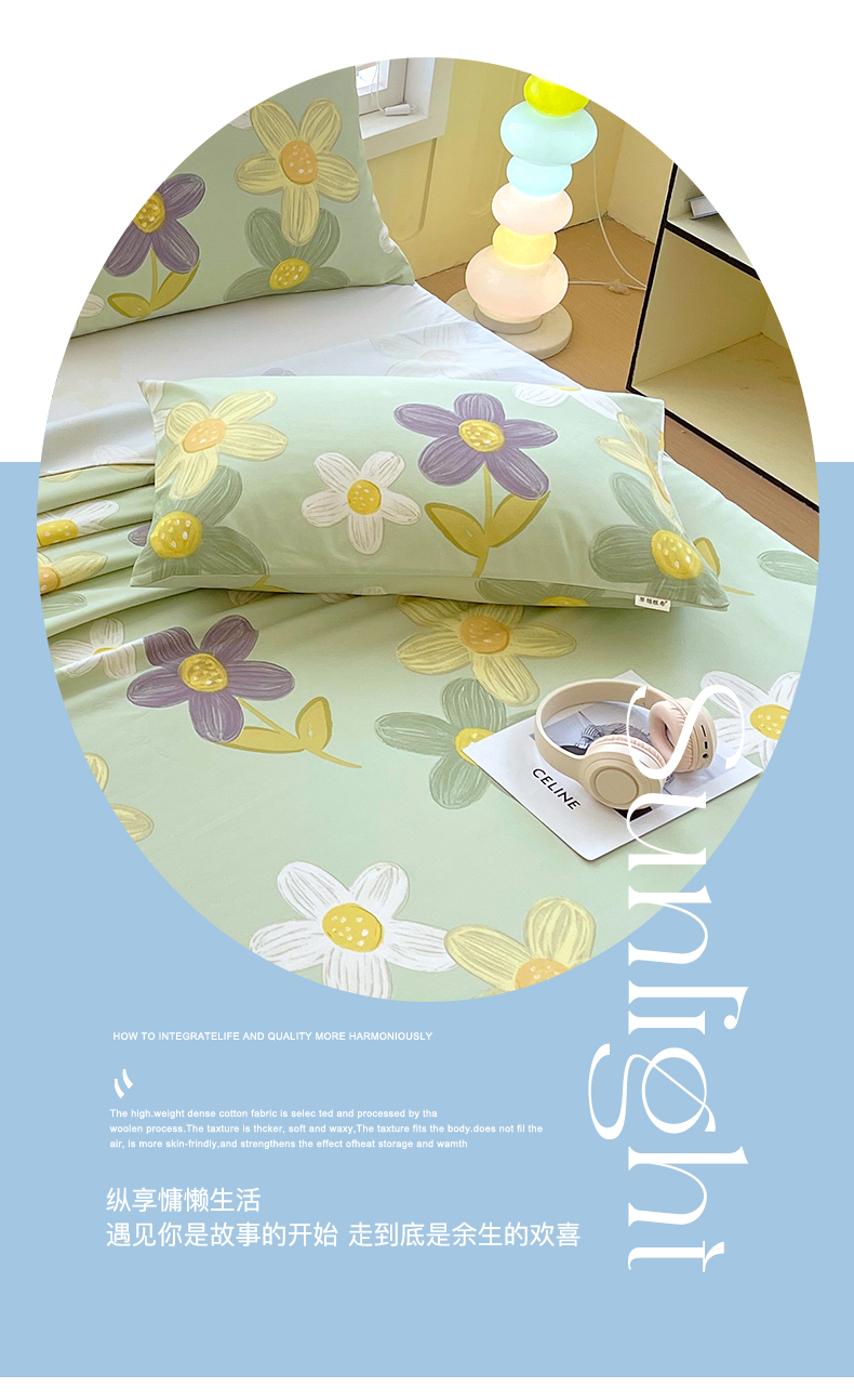 (总)金鑫汇家纺 2026新款全棉印花小清新单品床笠系列-可露丽,海盐可露丽,浅咖可露丽,浅绿可露丽,月下花影-桔,月下花影-蓝,月下花影-绿