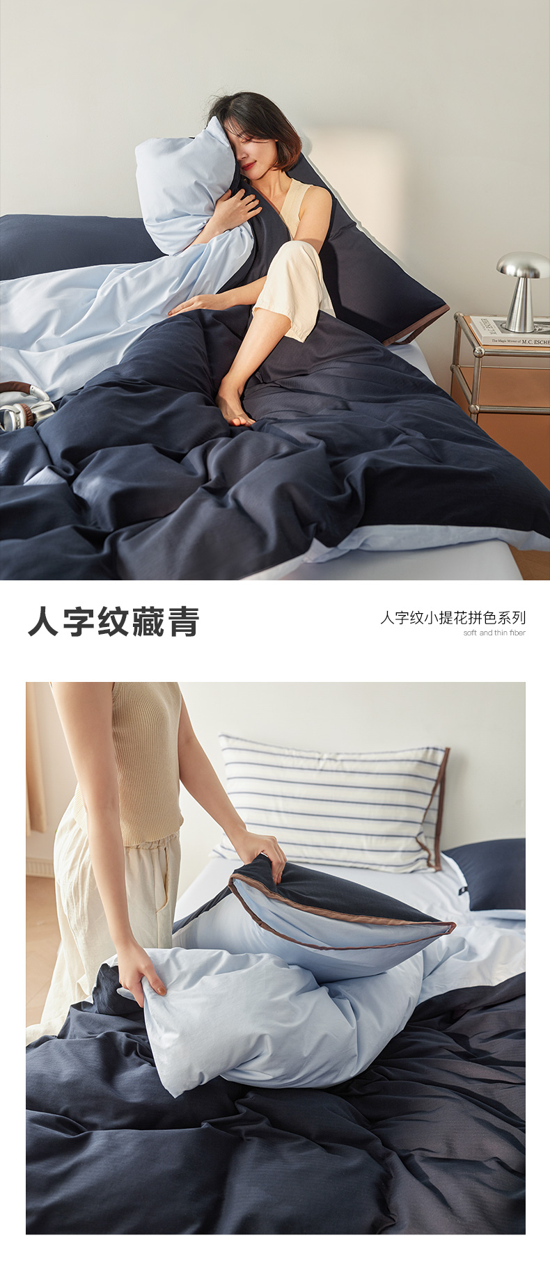 (总)佳汐蓝家纺 2026新款春夏人字纹小提花拼色系列四件套,人字纹山茶粉,人字纹藏青,人字纹韩绿,人字纹浅咖,人字纹浅蓝,人字纹炭灰