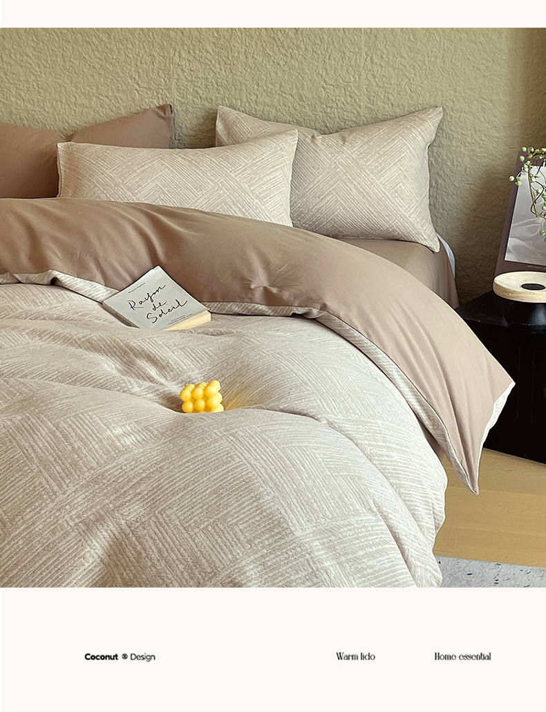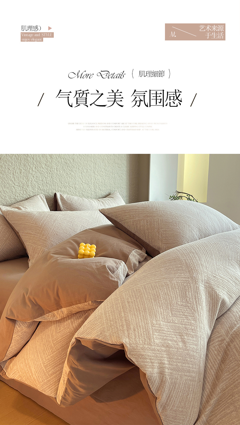 当前位置: 91家纺网 > 商品网购 > 床品套件 > 四件套 > 全棉普通四件套 > 琪格格纺织 2026新款纯棉纯棉色织肌理纹提花华夫格纯棉轻奢简约款四件套 简奢-可可棕