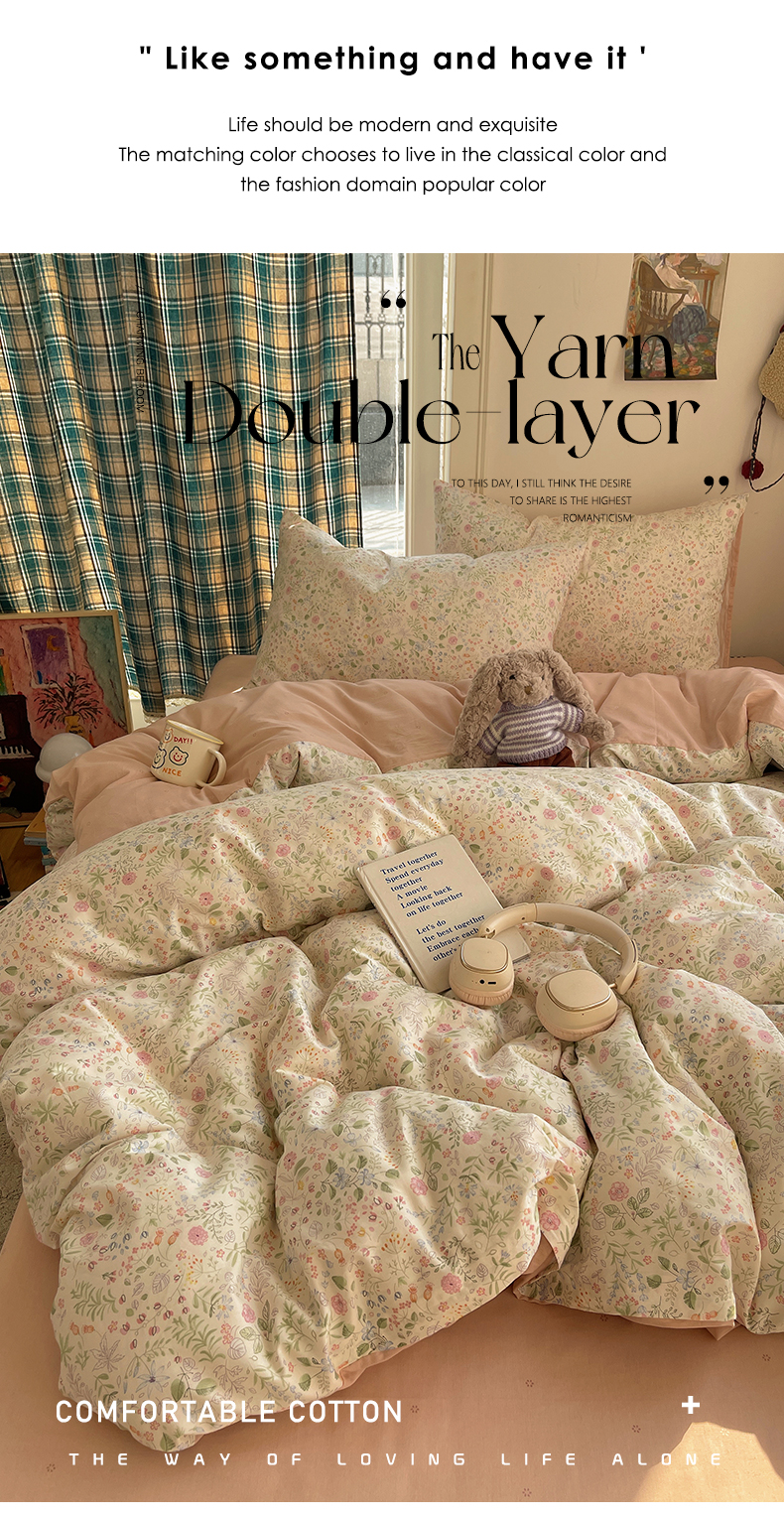 当前位置: 91家纺网 > 商品网购 > 床品套件 > 四件套 > 全棉普通四件套 > XIWEN-希文家纺 2026春夏新款40支全棉纯棉13372小清新印花四件套 浪漫花香