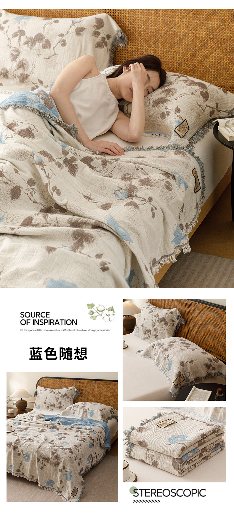 (总)朴尔家纺-毛巾被 2026新款全棉60s精细纱流苏花边四层纱布毛巾被,春木兰,花饰,兰草情,蓝色随想,暖阳,樱花恋,芝芝梅,竹意,组合图