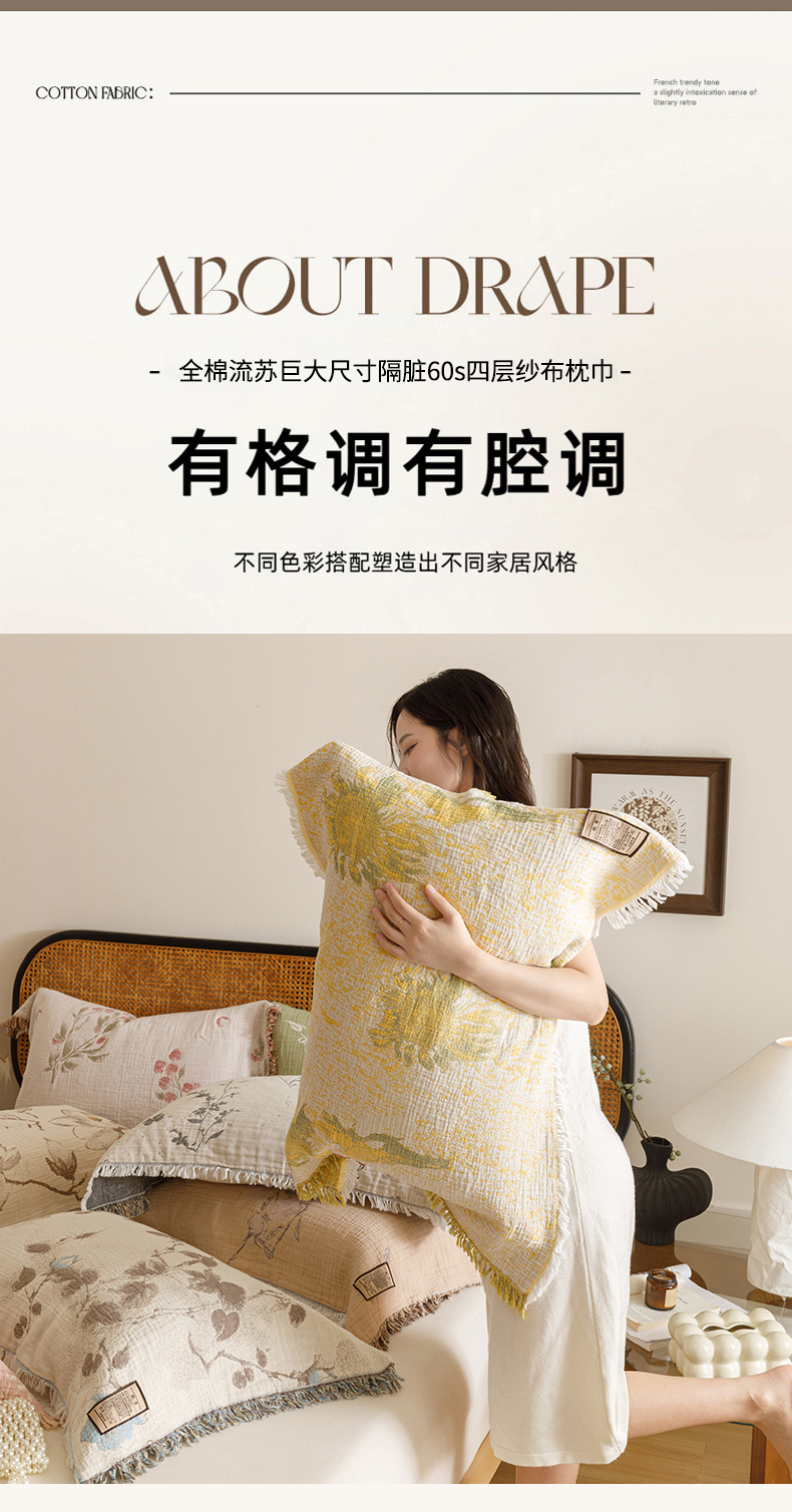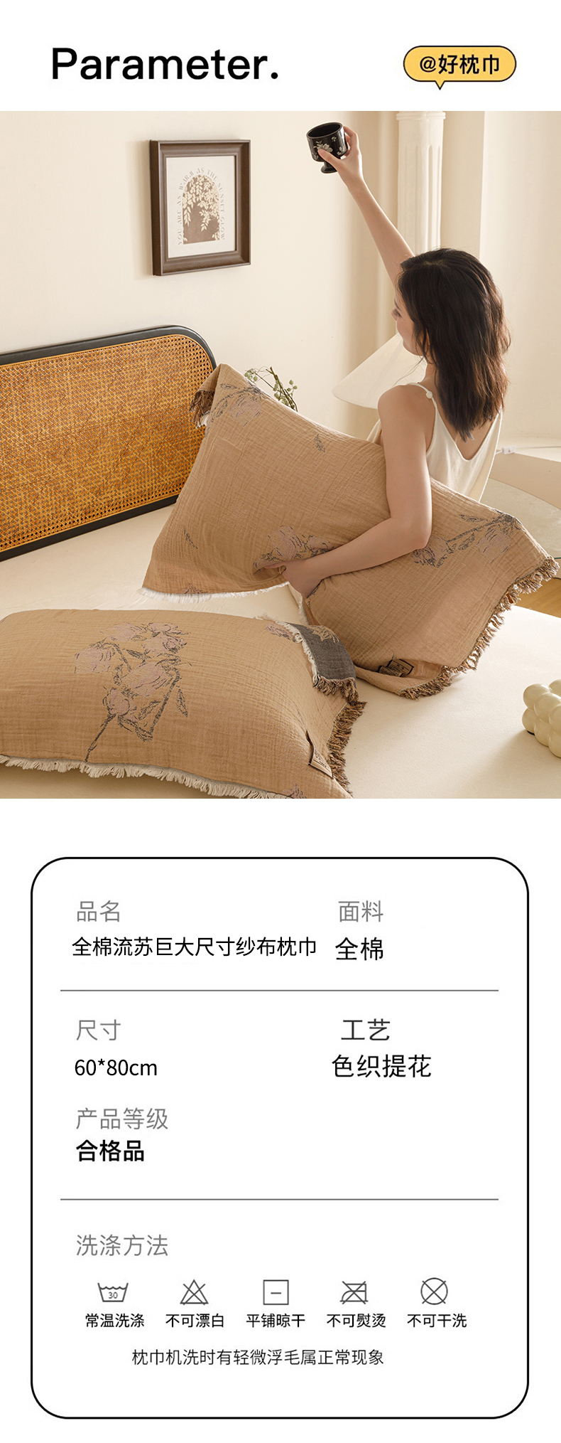 当前位置: 91家纺网 > 商品网购 > 床上用品 > 枕巾垫巾 > 朴尔家纺-毛巾被 2026新款全棉流苏巨大尺寸60S纱布枕巾 春木兰