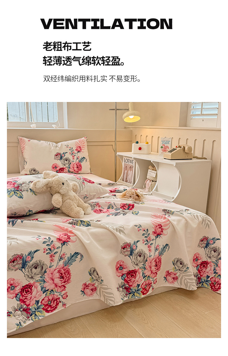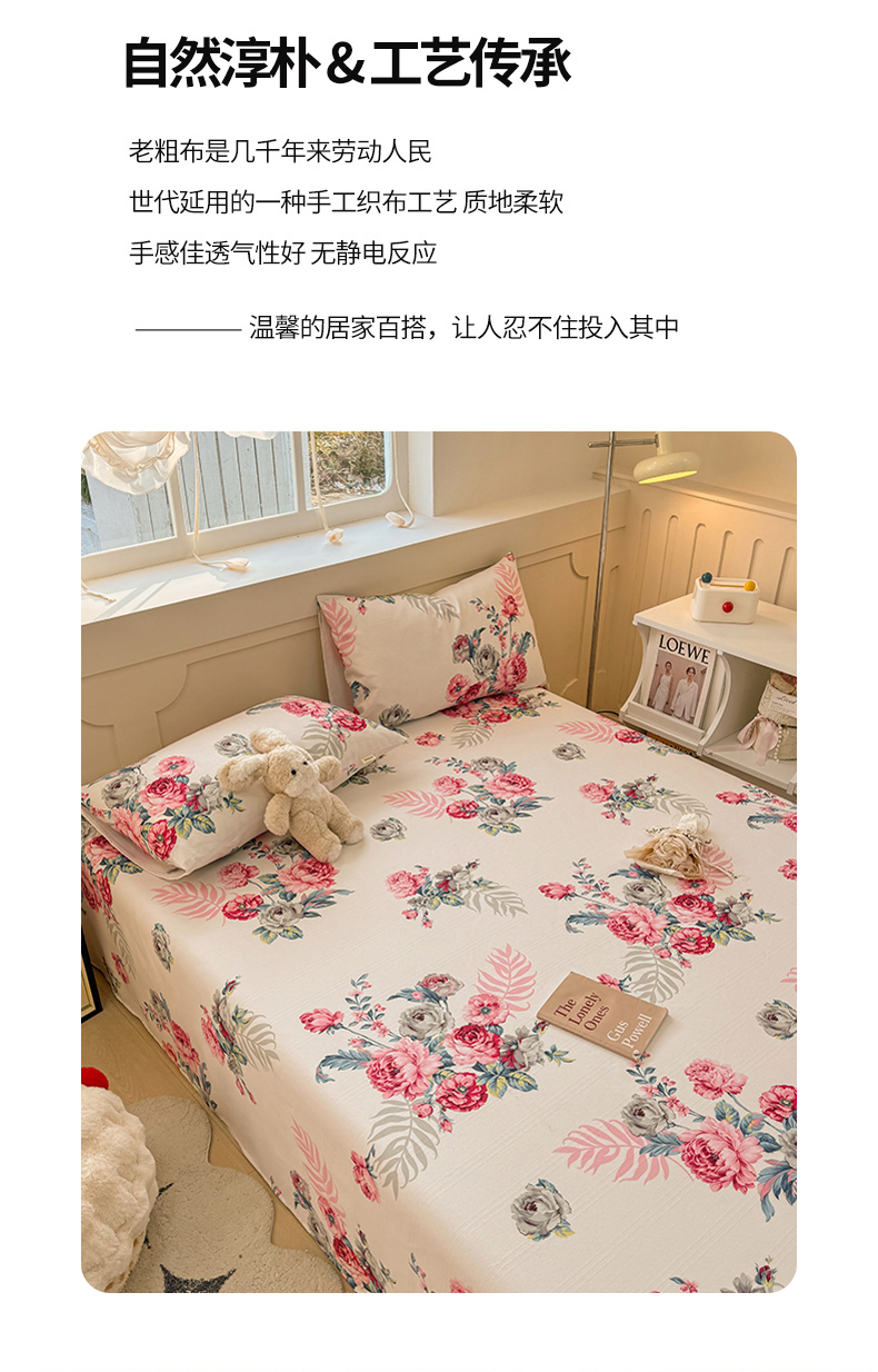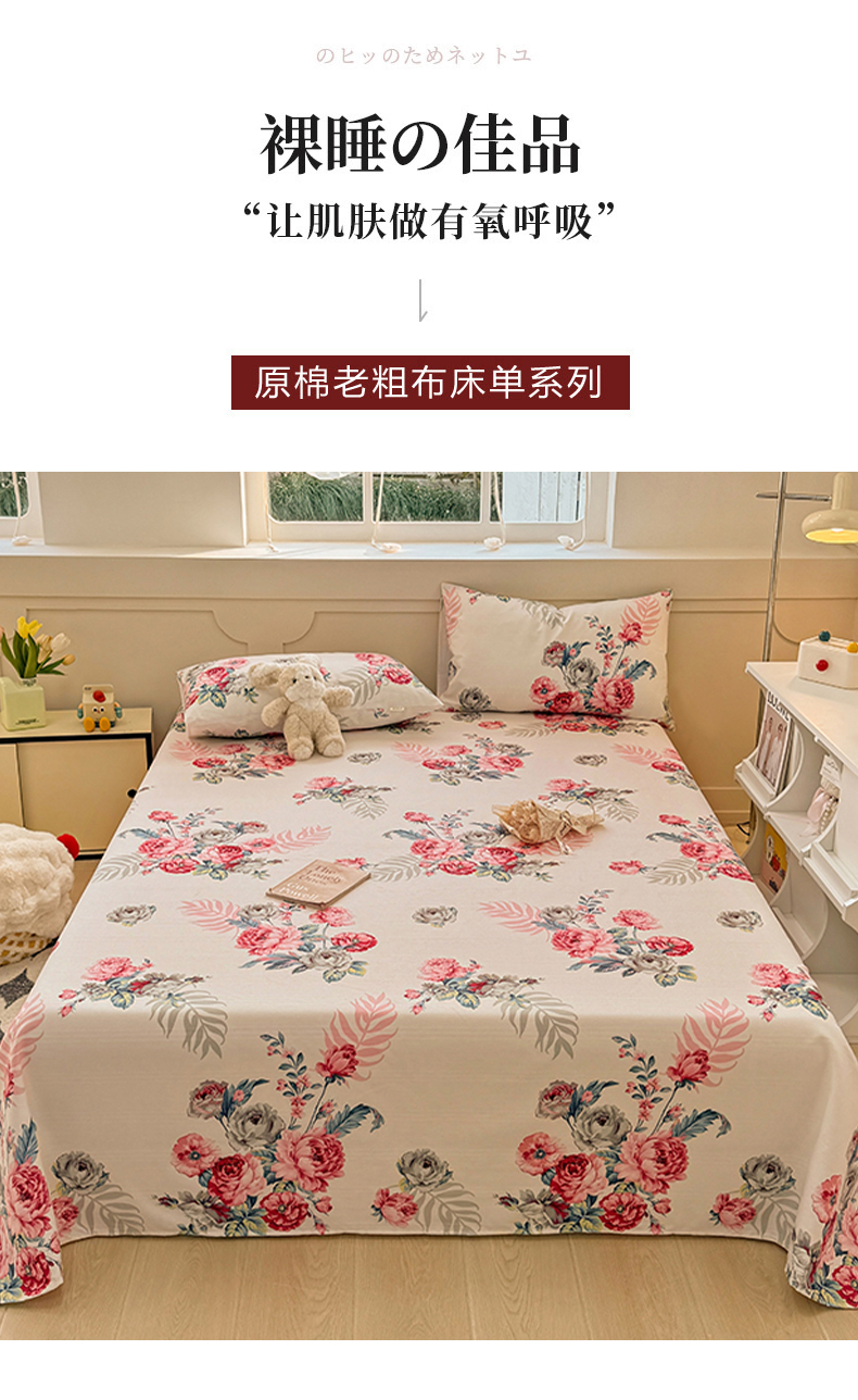 爱彼家纺 2026新款升级细沙亲肤舒适原棉老粗布床单席子凉席 灿烂时光