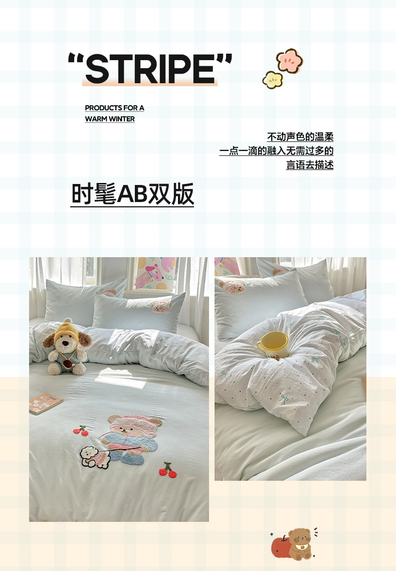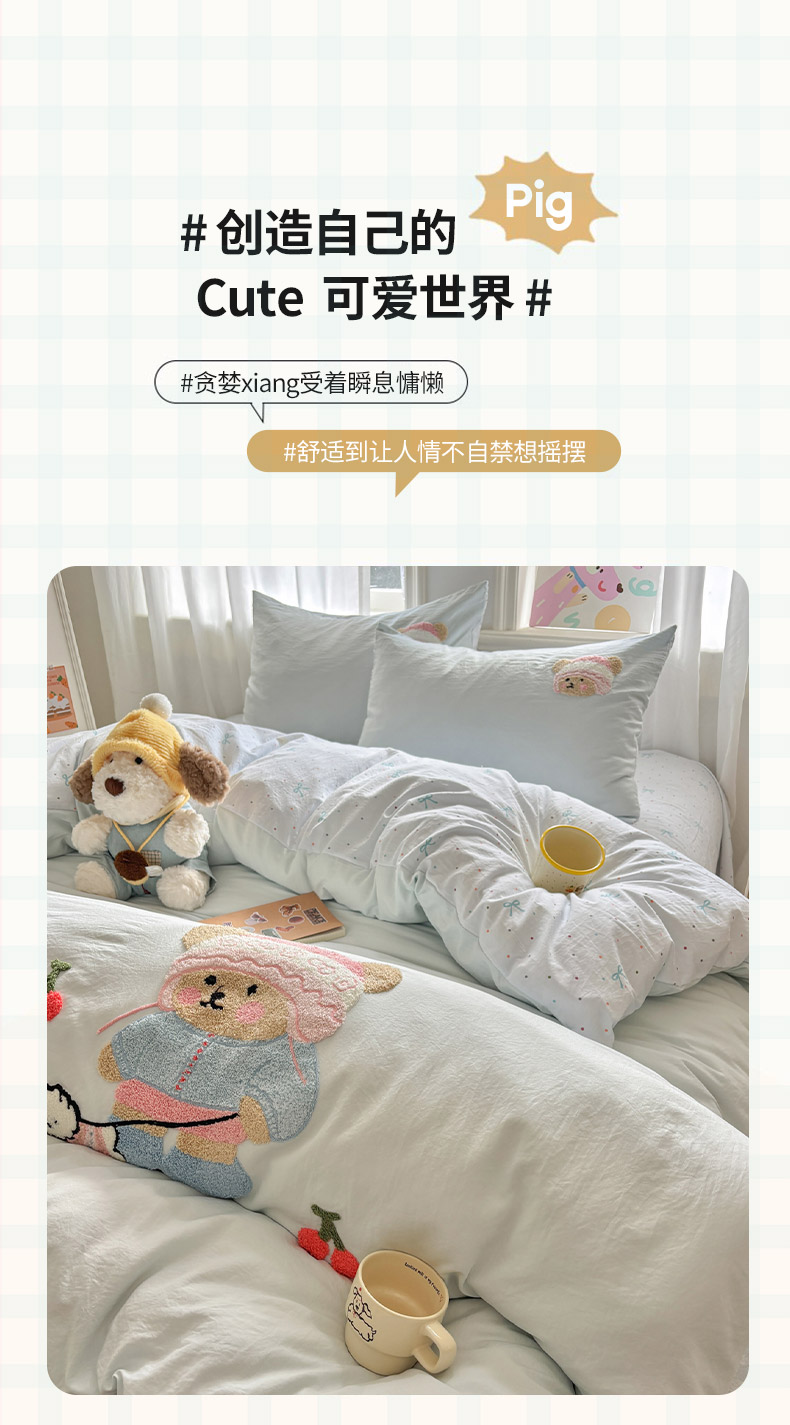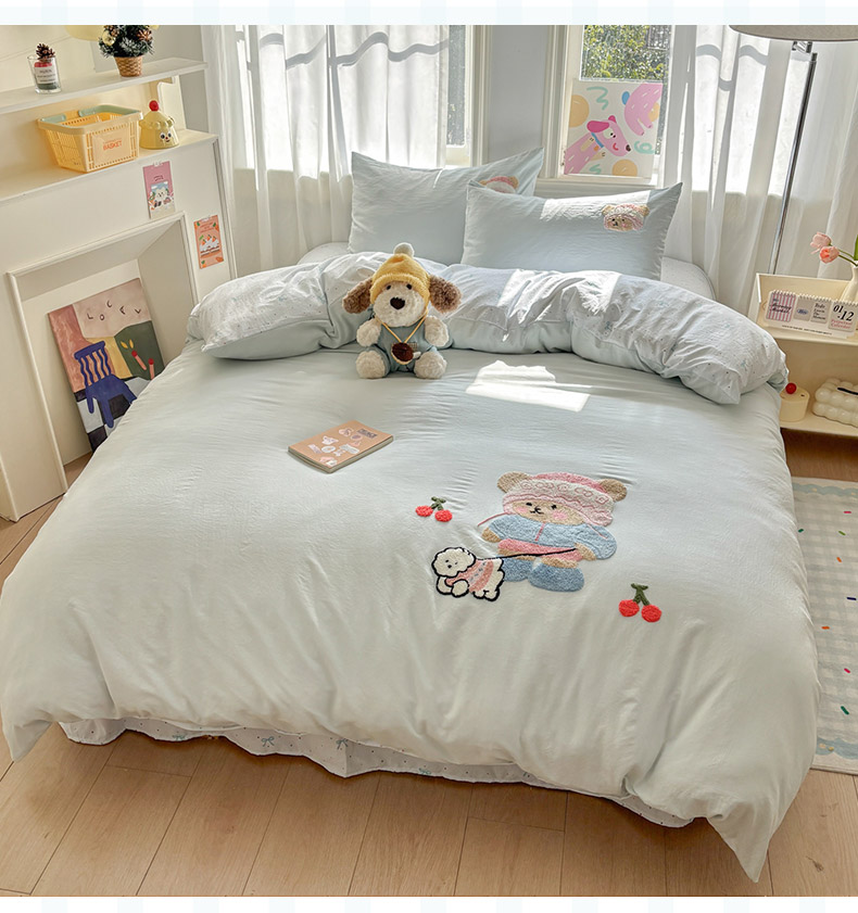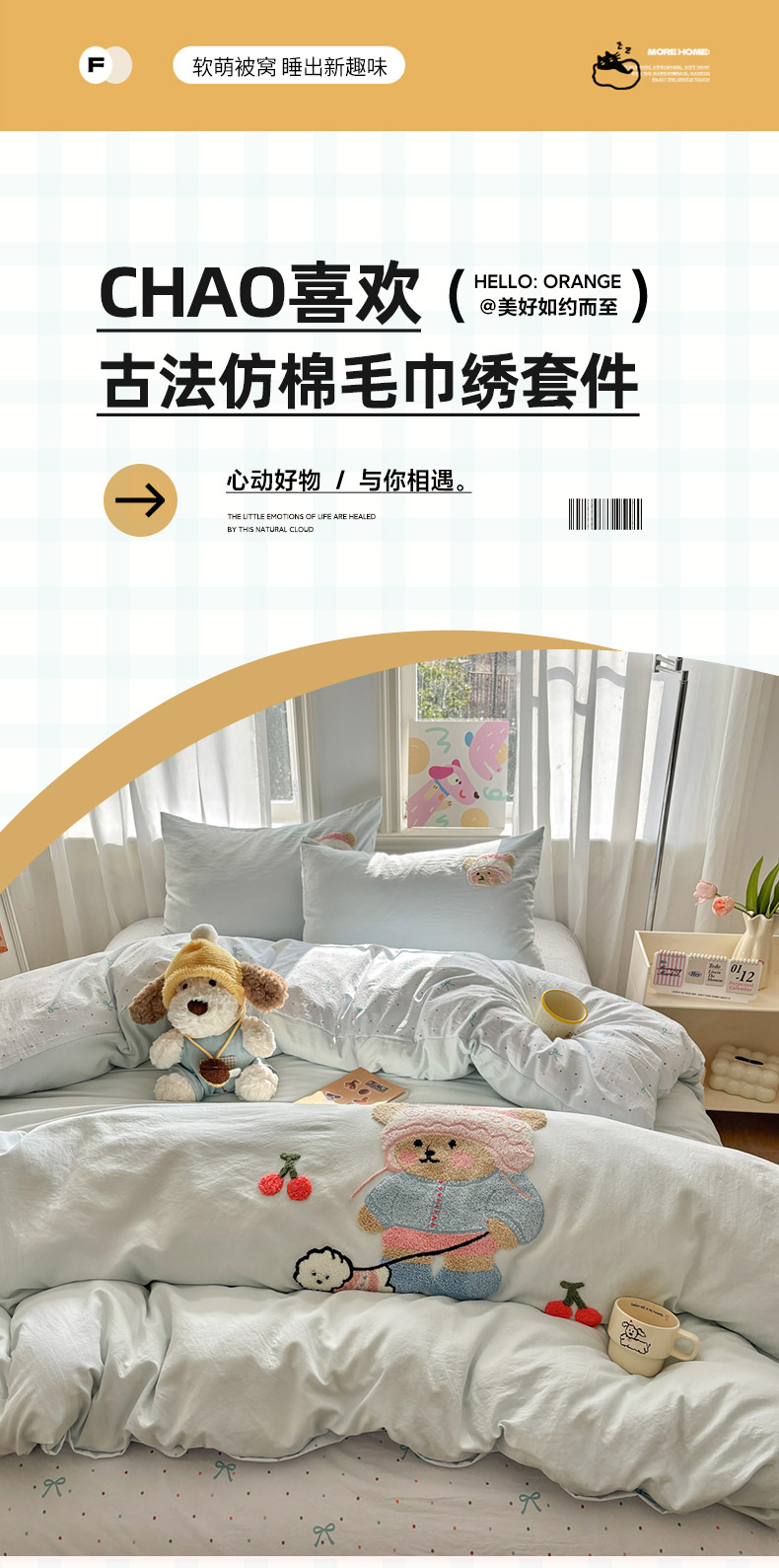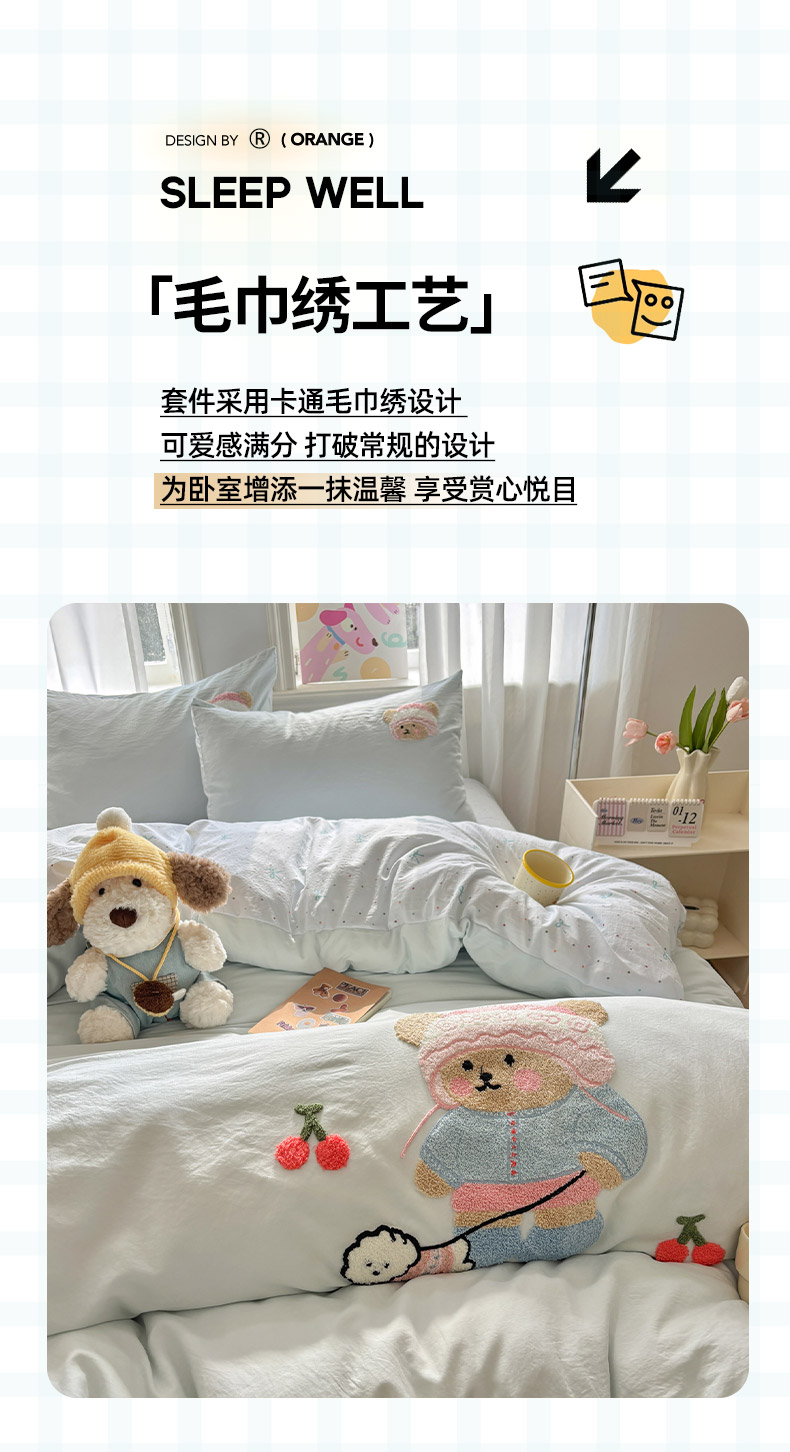 当前位置: 91家纺网 > 商品网购 > 床品套件 > 四件套 > 其它四件套 > 色鬼布艺高端家居主号 2026新款古法毛巾绣四件套 樱桃小熊-蓝