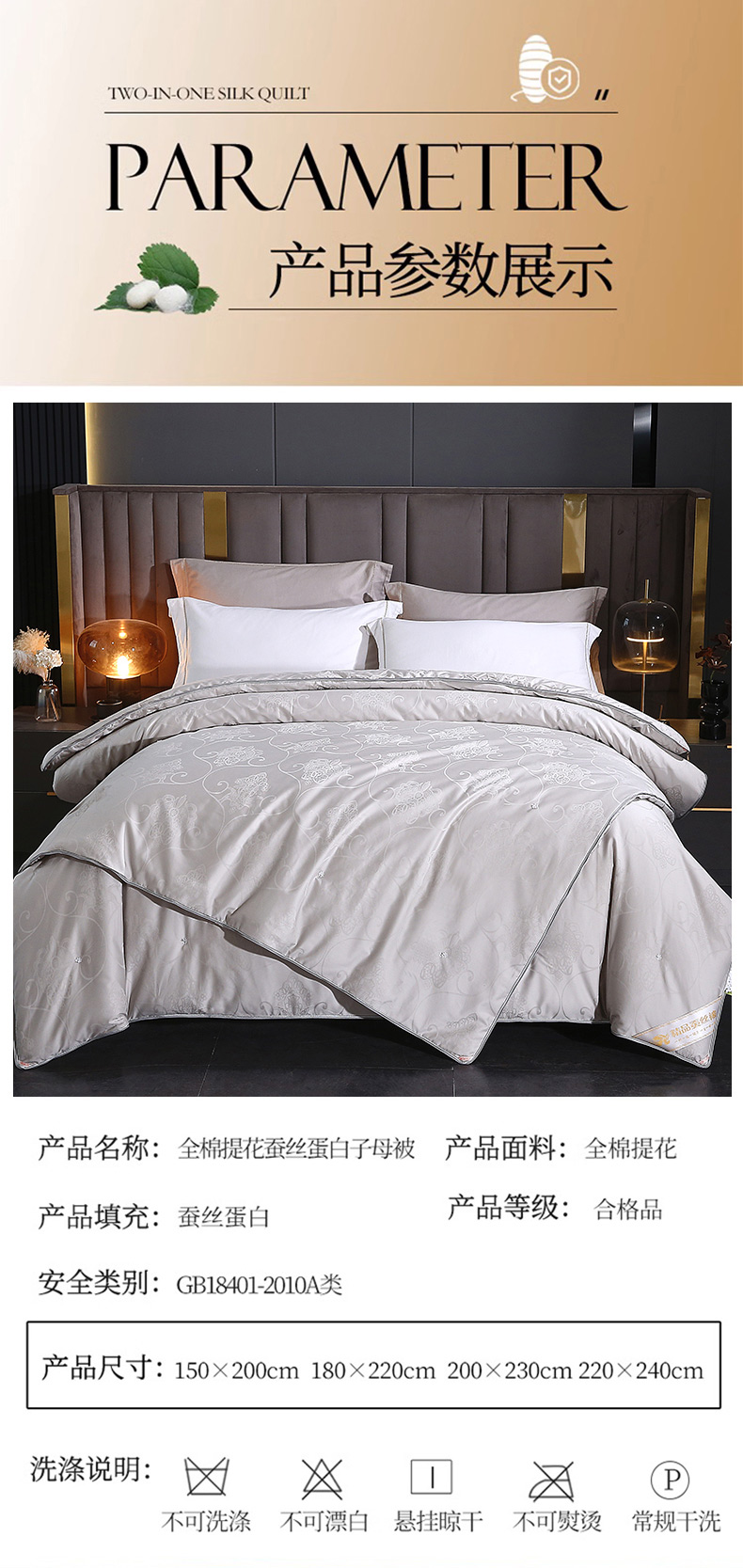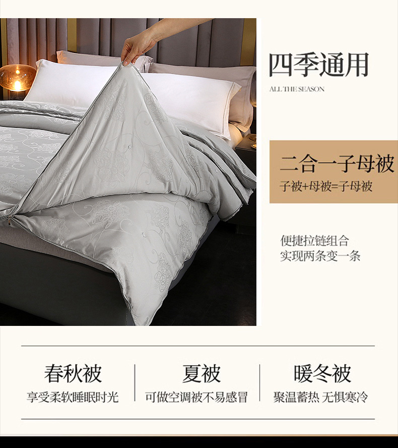 • 91家纺网 家纺一手货源 找家纺 (总)犇牛仓储供应链 2026新款全棉提花蚕丝蛋白拉链二合一子母被被子被芯,灰色,粉色,玉色,红色,白色