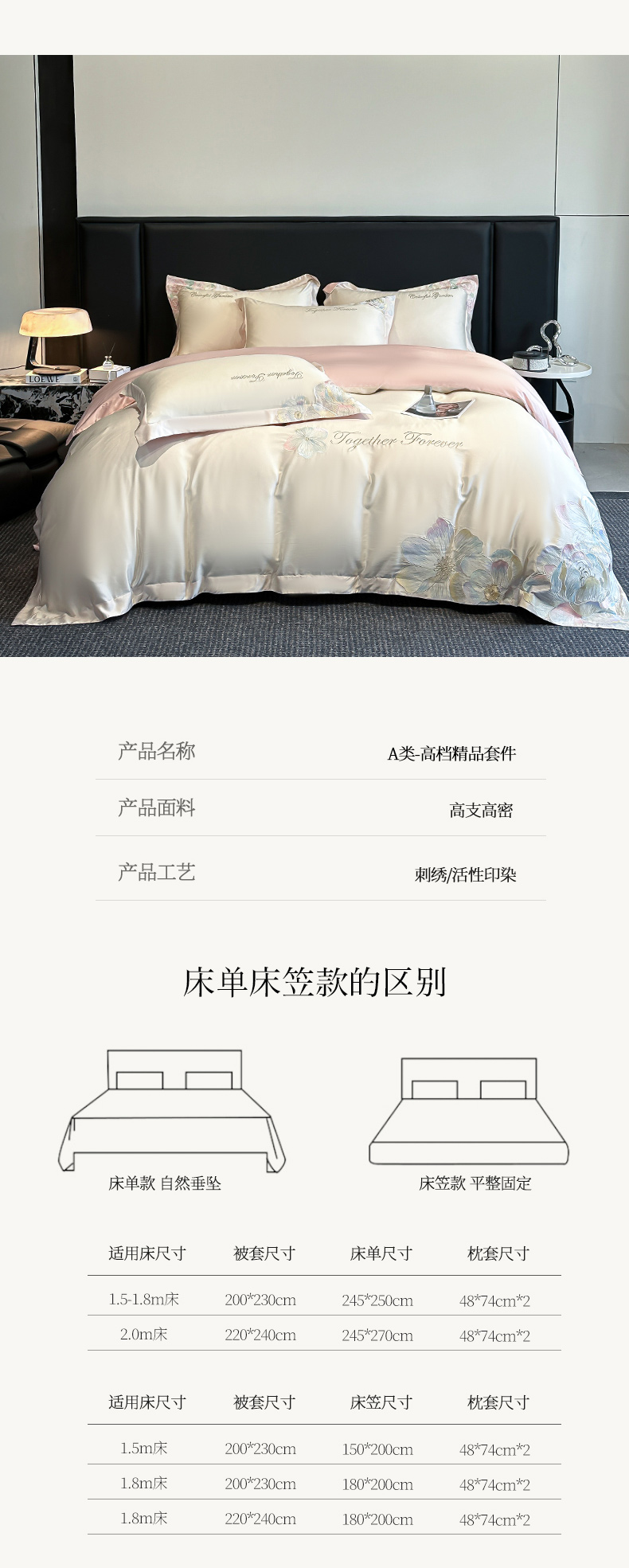 商品名称:(总)润锦云 2026新款A类亲肤棉高支高密刺绣四件套花溪系列