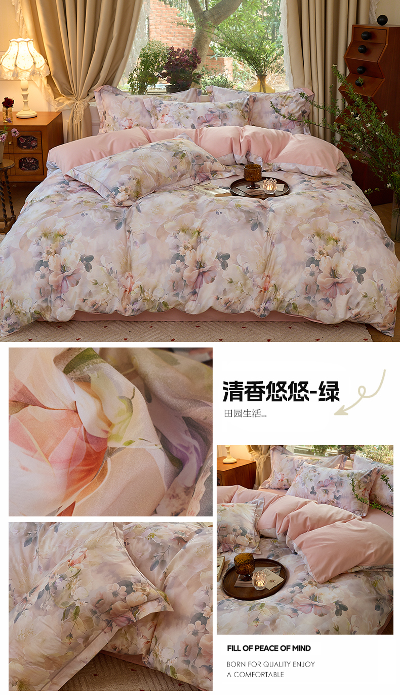 (总)润锦云 2026新款A类长绒棉纯棉数码印花宽边四件套,暗香疏影,花漾盛典,玫瑰庄园,叶语悠然