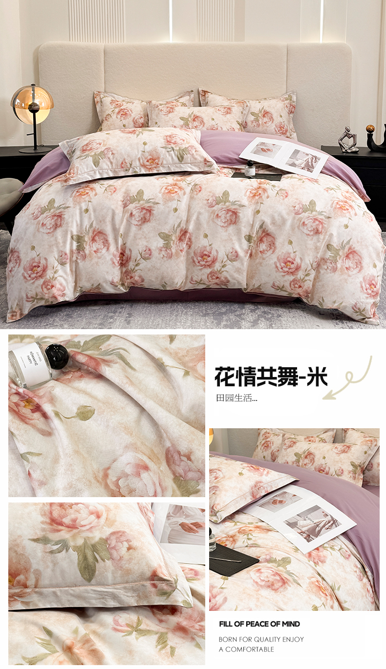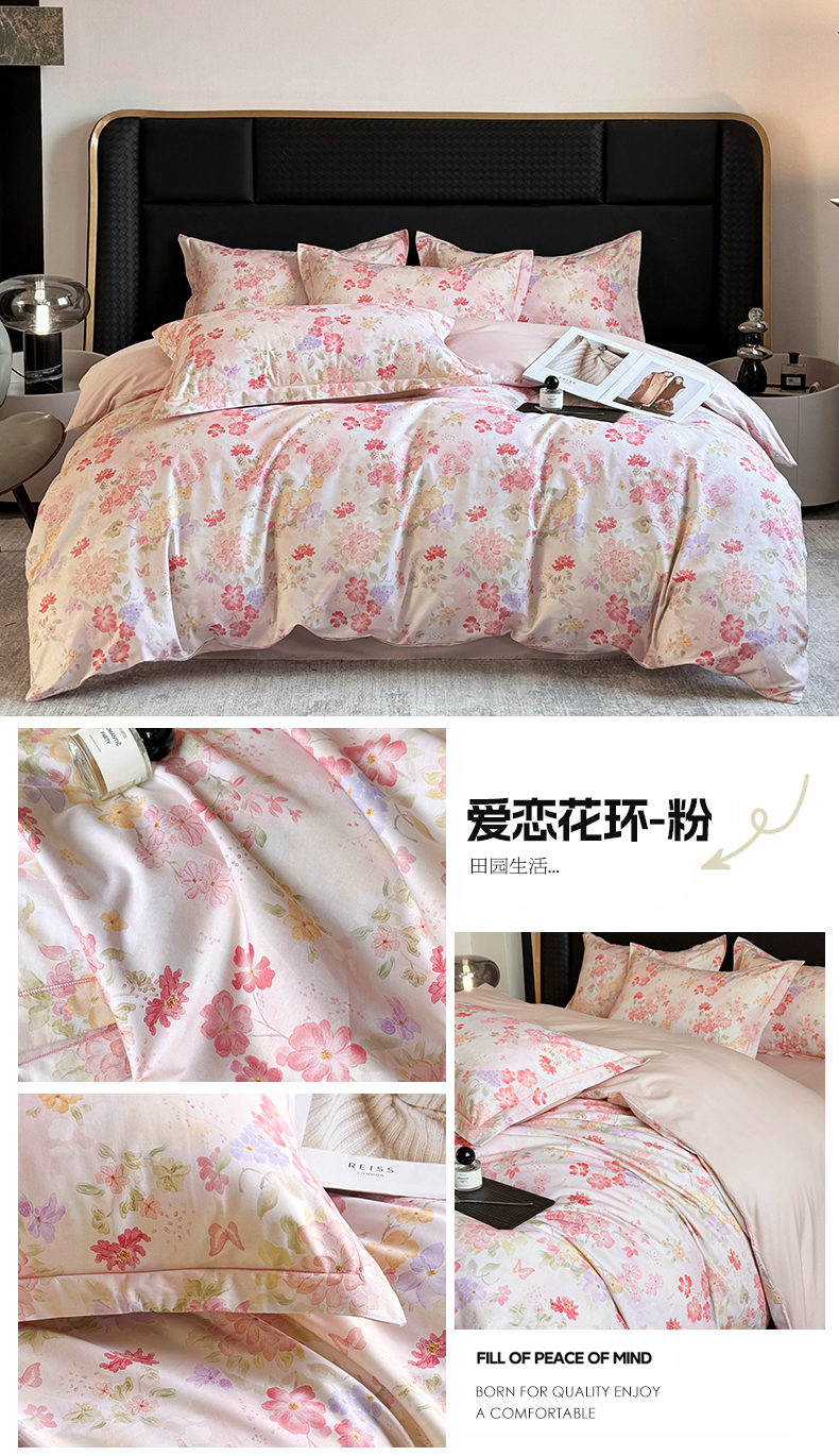 (总)润锦云 2026春夏新款全棉纯棉13372数码印花四件套,爱恋花环-粉,爱恋花环-紫,波斯记忆-蓝,繁花里-粉,花情共舞-米,美尼尔-粉,翩翩花语-蓝,蔷薇花开-黄,清香悠悠-绿,日落花语-灰,唯有暗香-绿