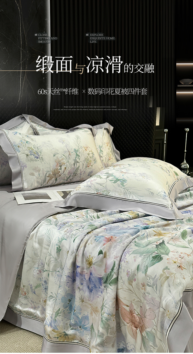 • 91家纺网 家纺一手货源 找家纺 岚司羽 2026春夏新款60天丝夏被四件套夏凉被空调被系列 如夏