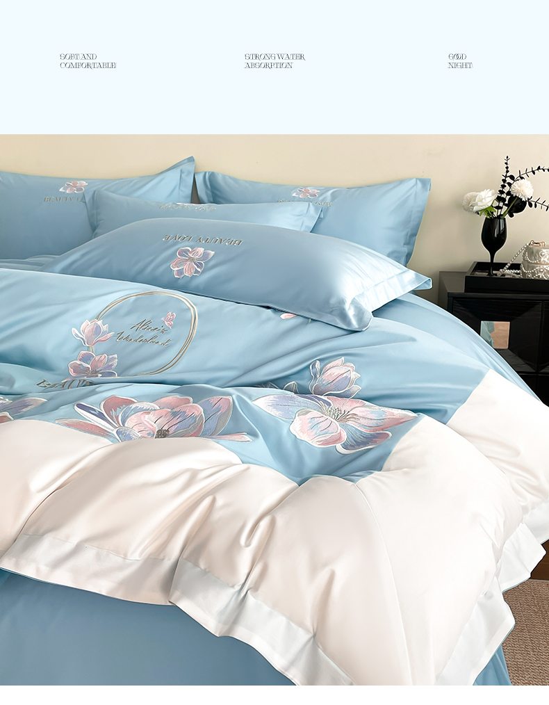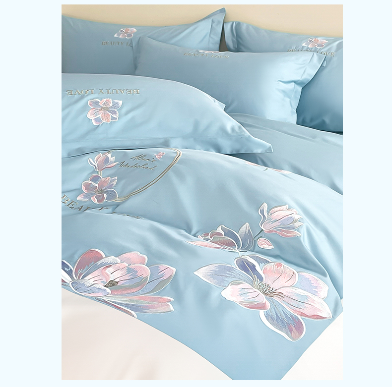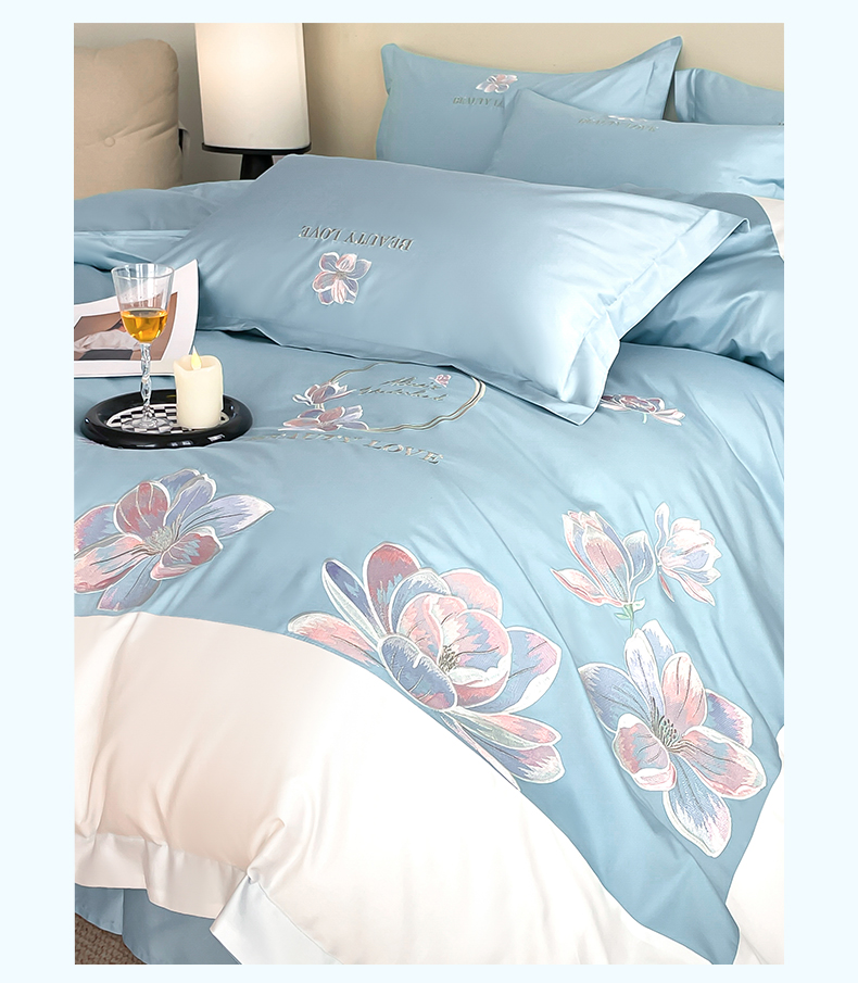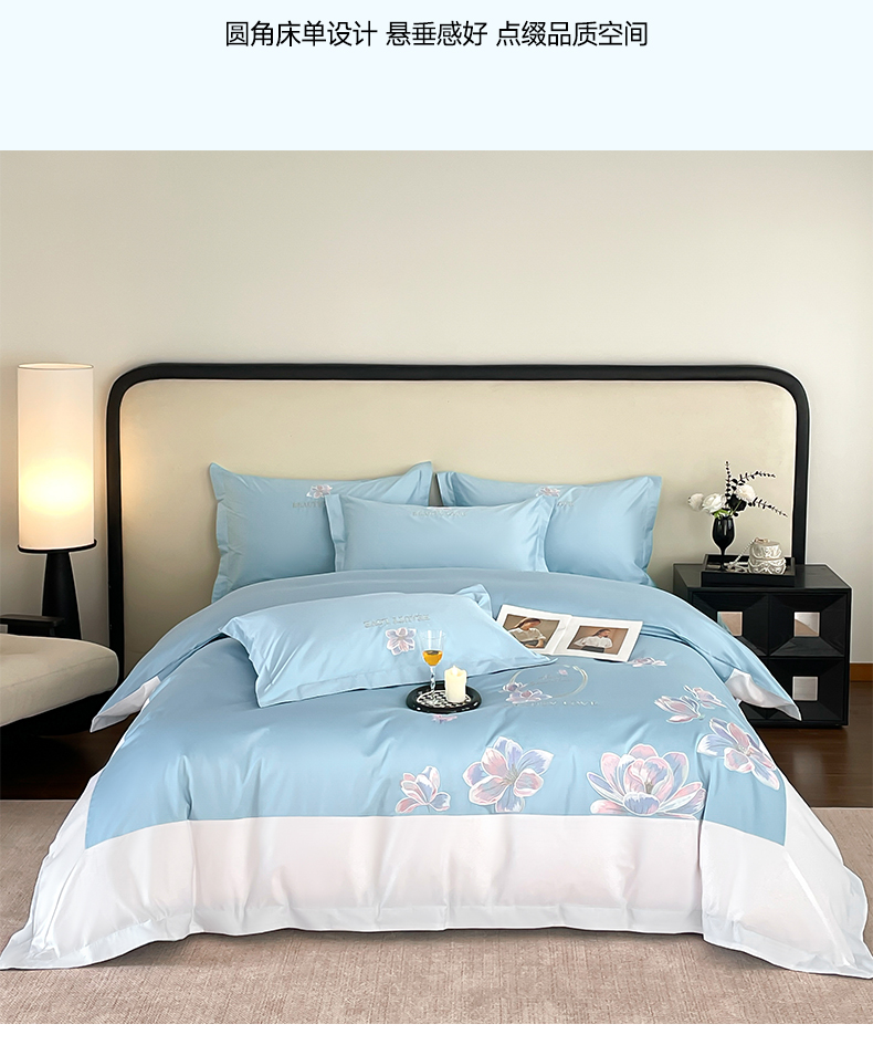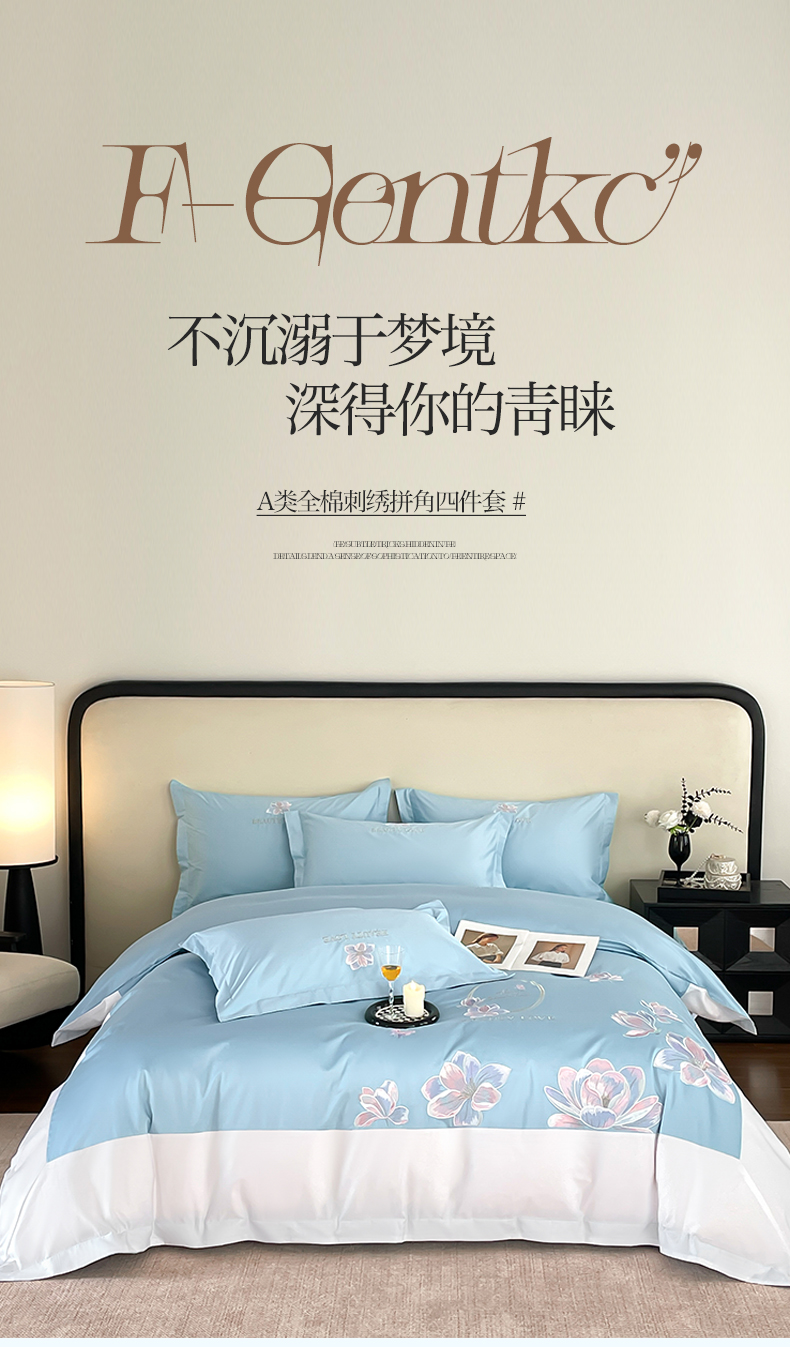 当前位置: 91家纺网 > 商品网购 > 床品套件 > 四件套 > 全棉普通四件套 > 润锦云 2026新款A类全棉纯棉刺绣拼角四件套-栀梦 栀梦-柔雾蓝+奶白