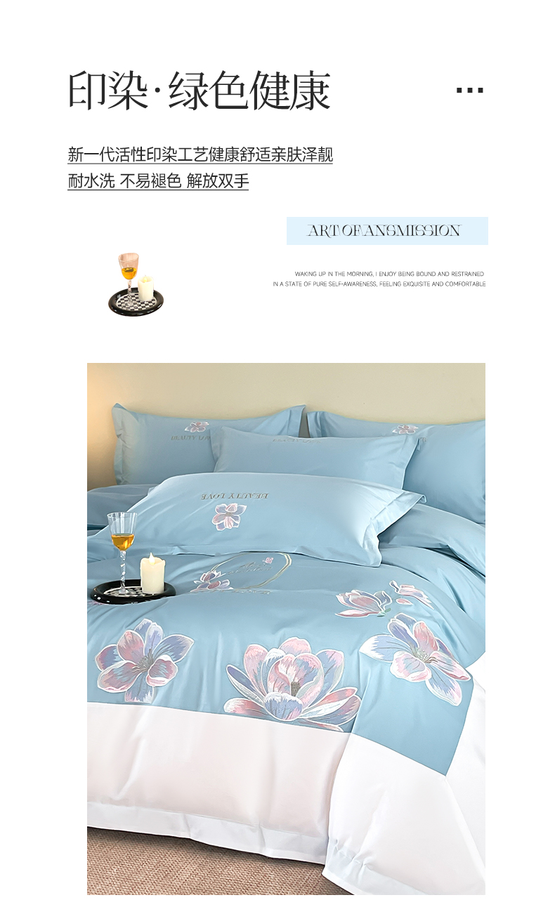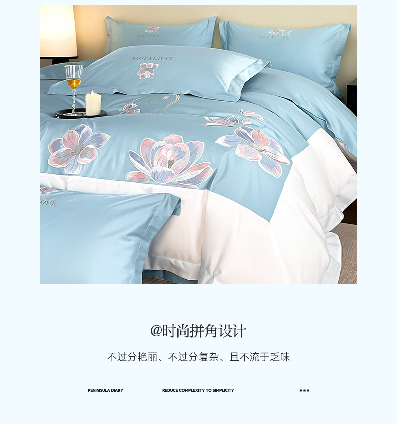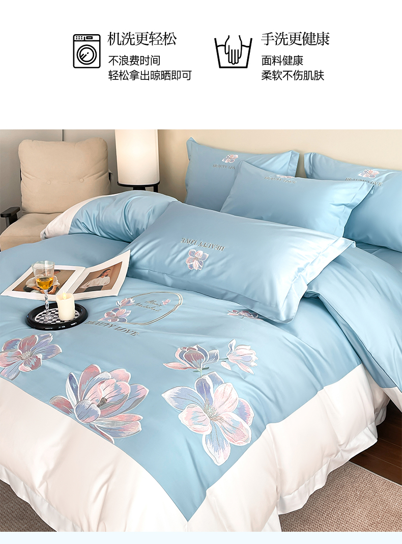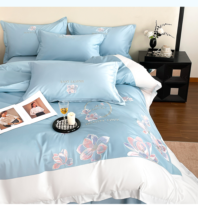 当前位置: 91家纺网 > 商品网购 > 床品套件 > 四件套 > 全棉普通四件套 > 润锦云 2026新款A类全棉纯棉刺绣拼角四件套-栀梦 栀梦-柔雾蓝+奶白