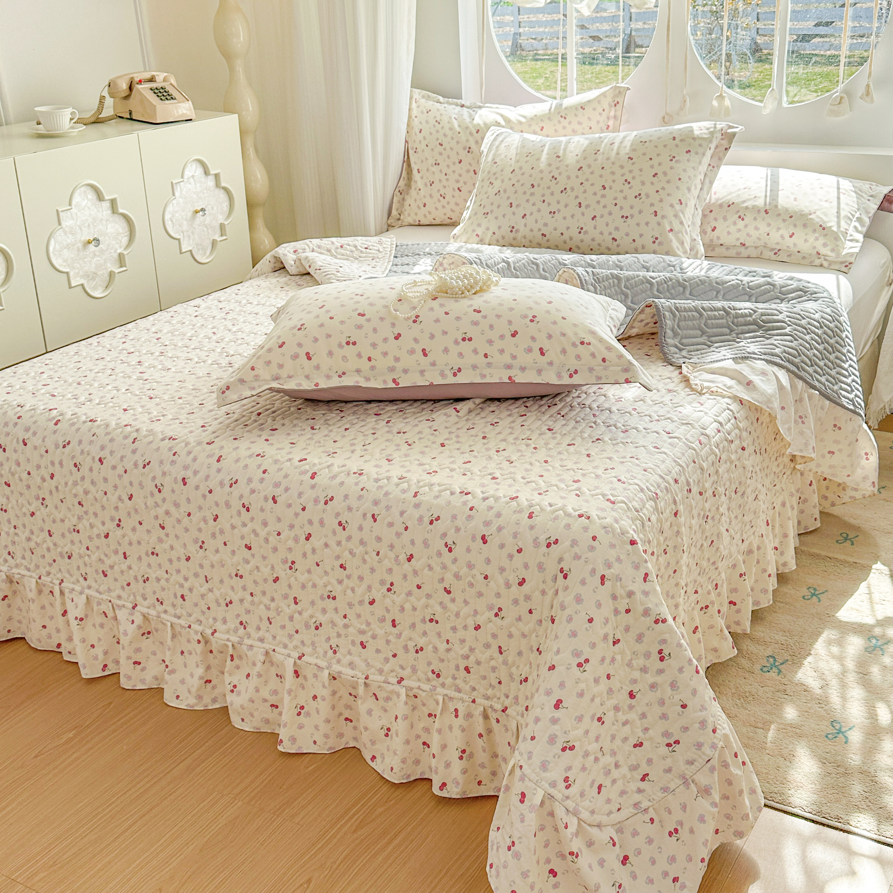 当前位置: 91家纺网 > 商品网购 > 床品套件 > 四件套 > 其它四件套 > 花满路 2026新款床盖四件套 小樱桃