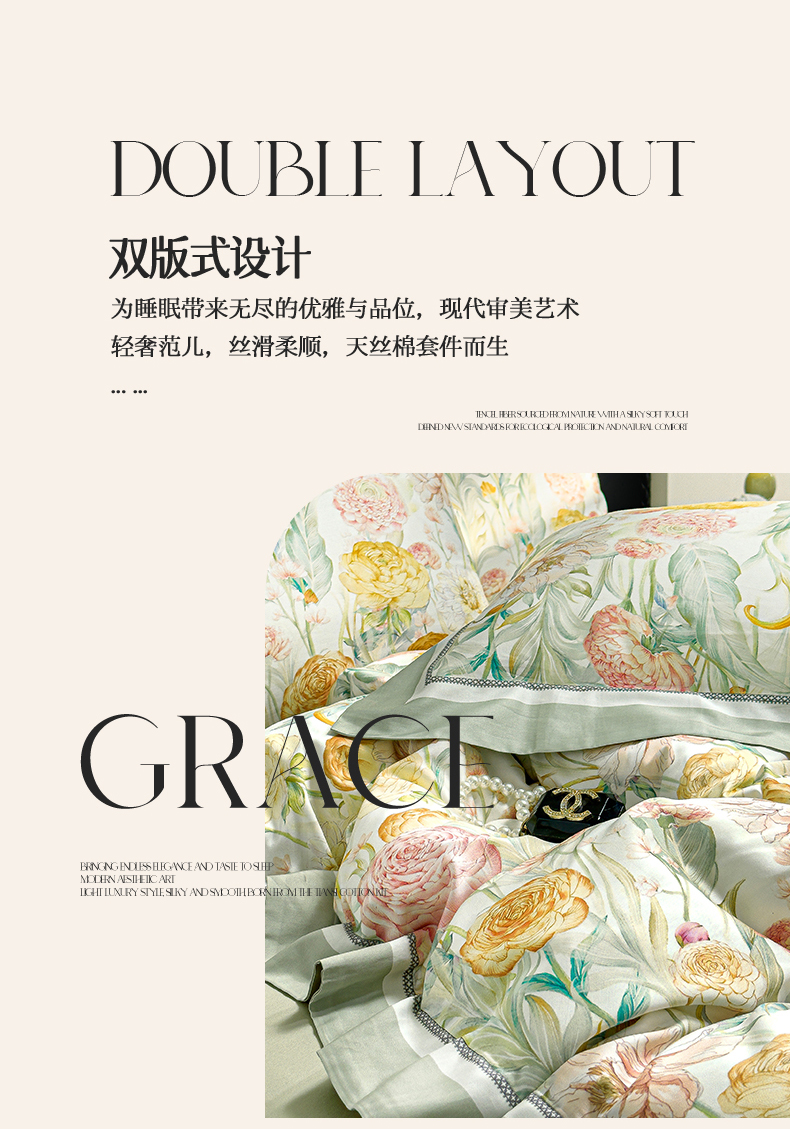岚司羽 2026春夏新款天丝棉大版数码印花四件套 百微