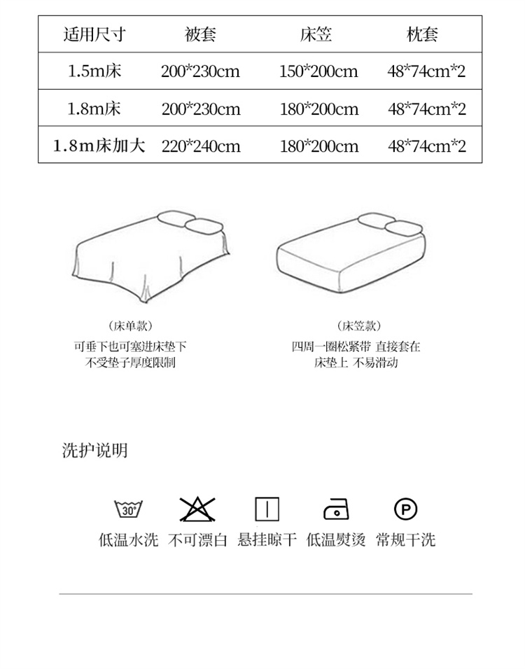 【床笠款】1.8四件套-被套200x230 | ¥270.00 |