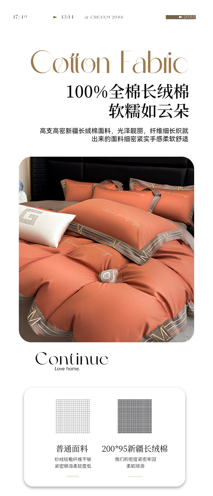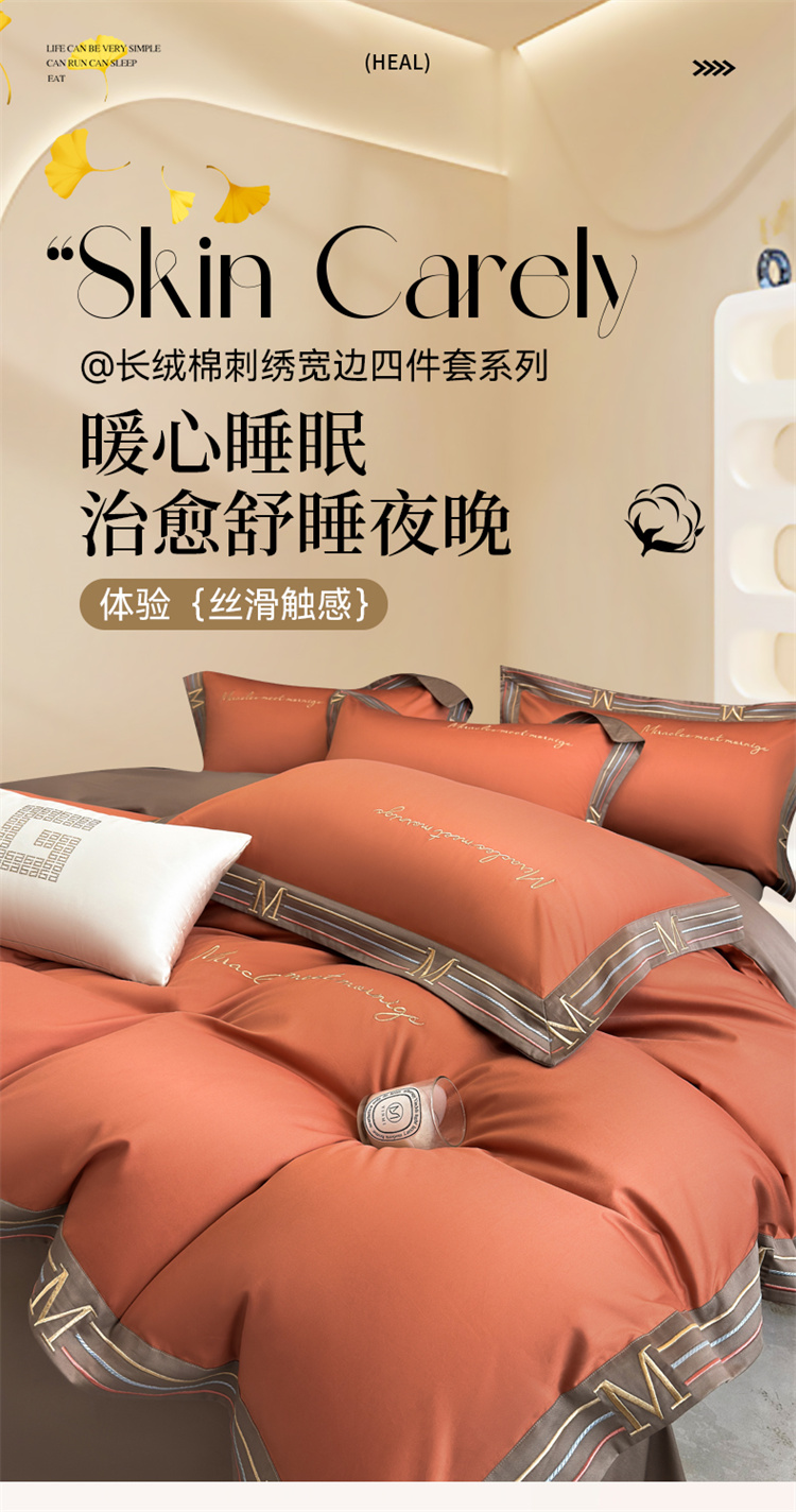 当前位置: 91家纺网 > 商品网购 > 床品套件 > 四件套 > 长绒棉四件套 > 家居1号家纺 2026春夏新款50双股100支A类长绒棉纯棉巴特系列四件套 巴特-高级橙
