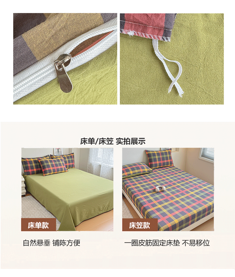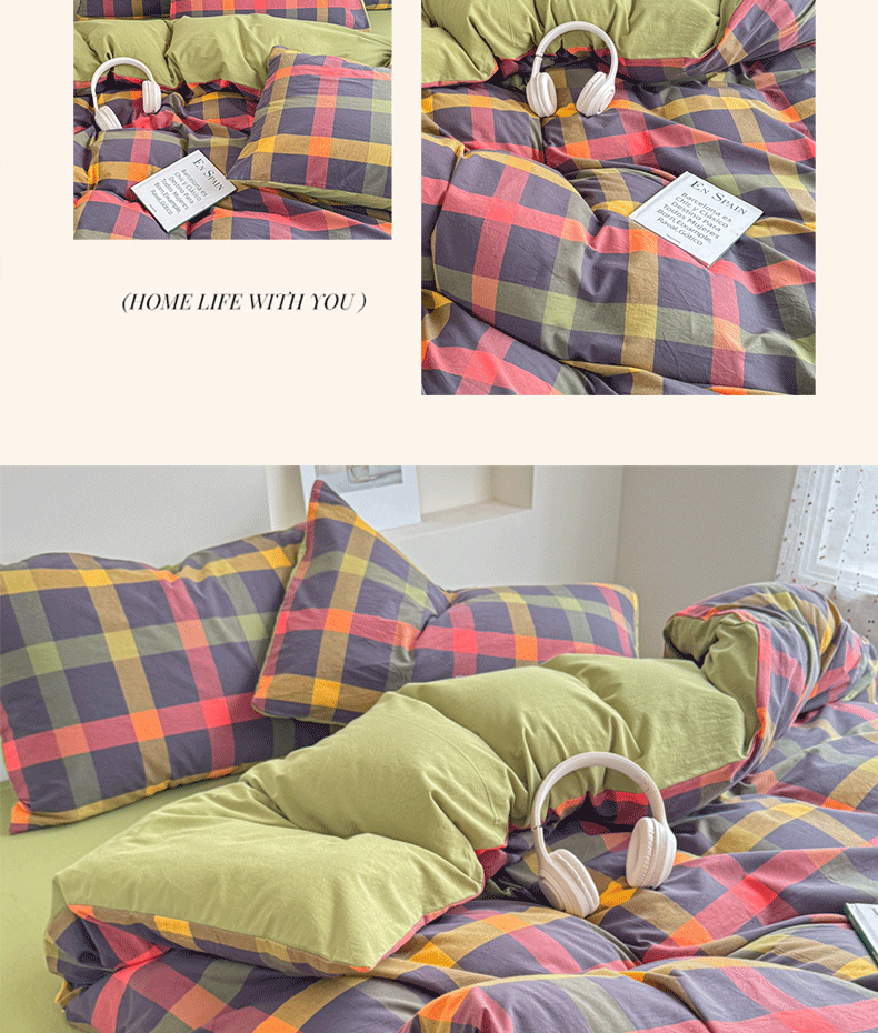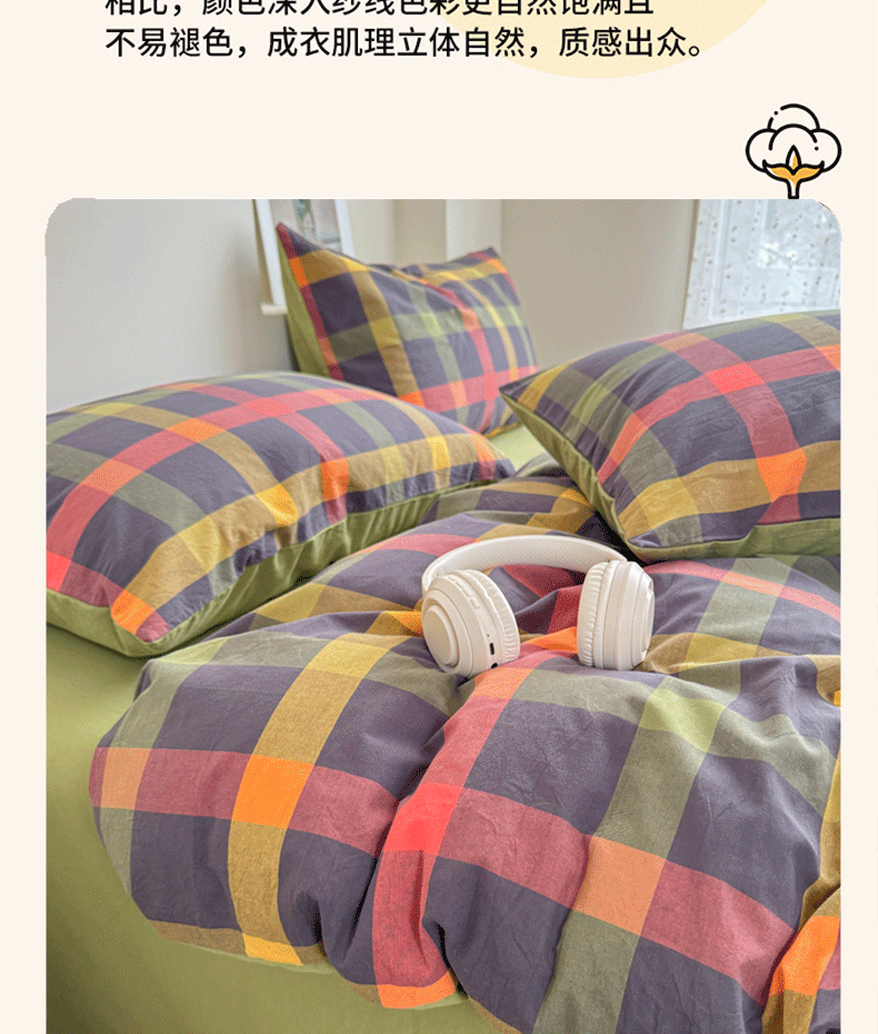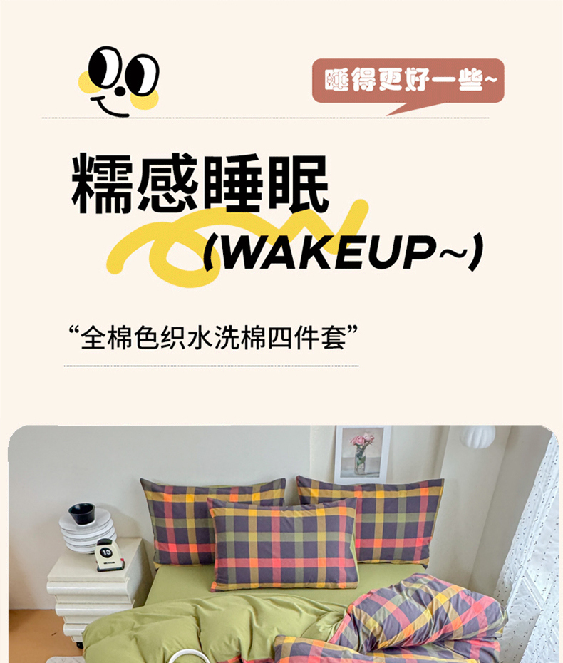 (总)佑佳家纺 2026新款全棉色织水洗棉四件套,橙蓝格,嘟嘟柚红,灰色空间,简兮-蓝,蓝小格,洛林-灰,绿大格,马里奥-粉,米小格,莫尼-灰,牛油果-绿,羽梦-粉,组合图仅供展示-不可下单