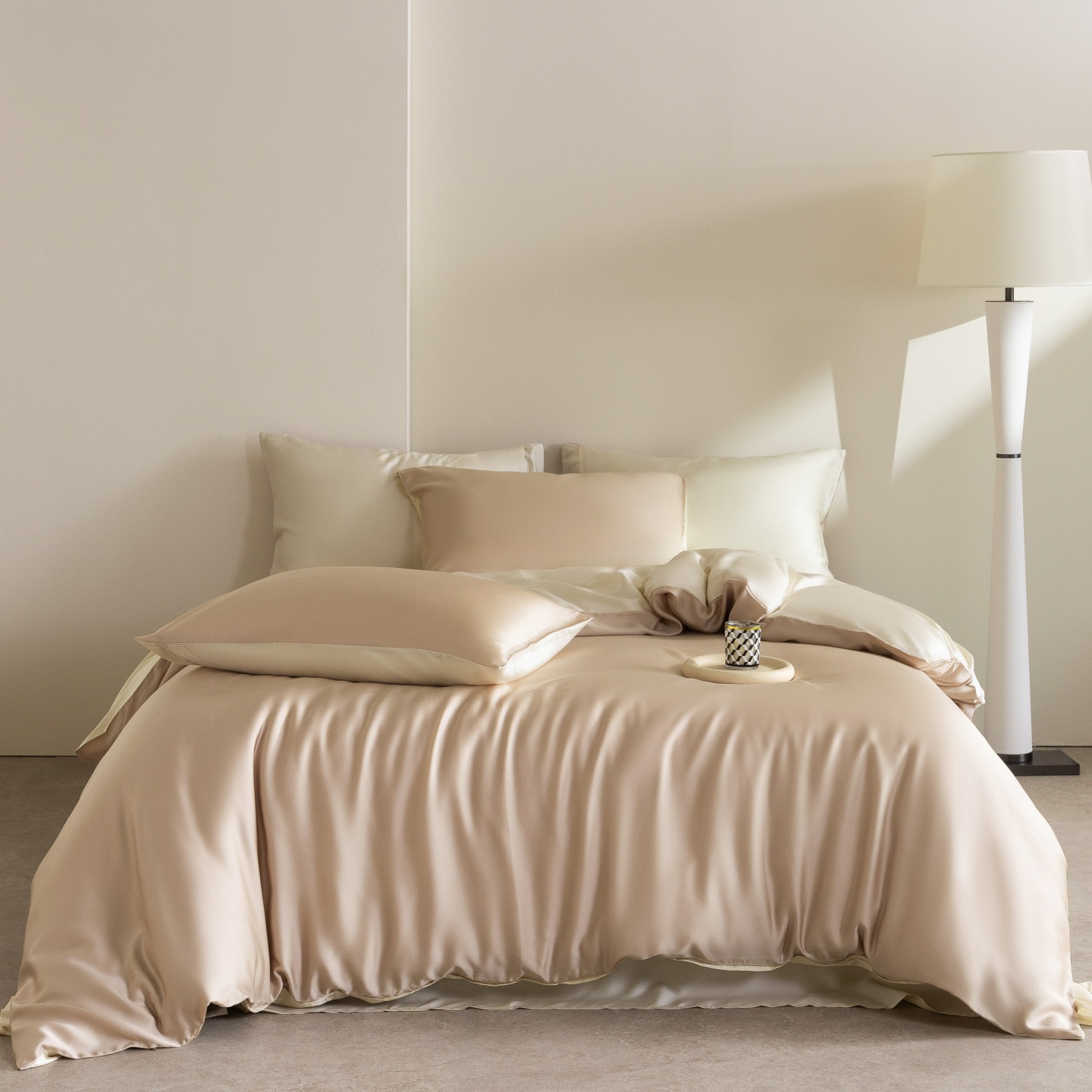 时亿家居 2026春夏新款60天丝-丝颜悦色系列-被套四件套 晨阳咖