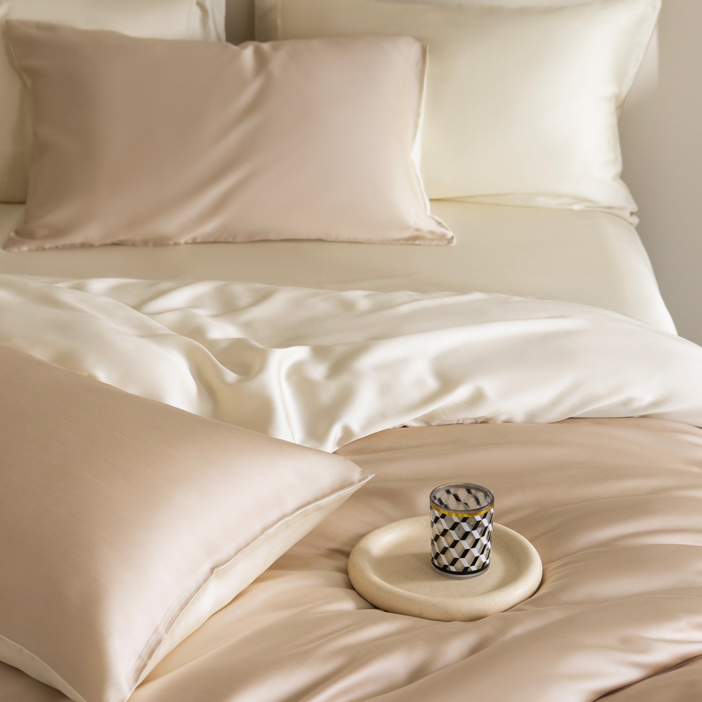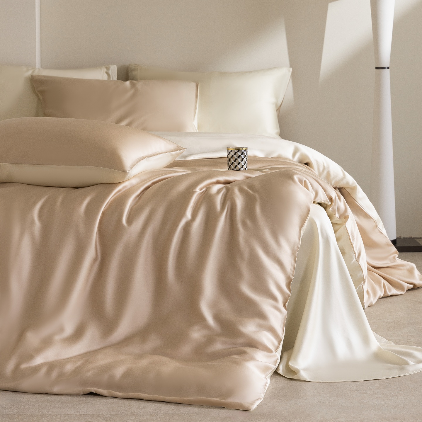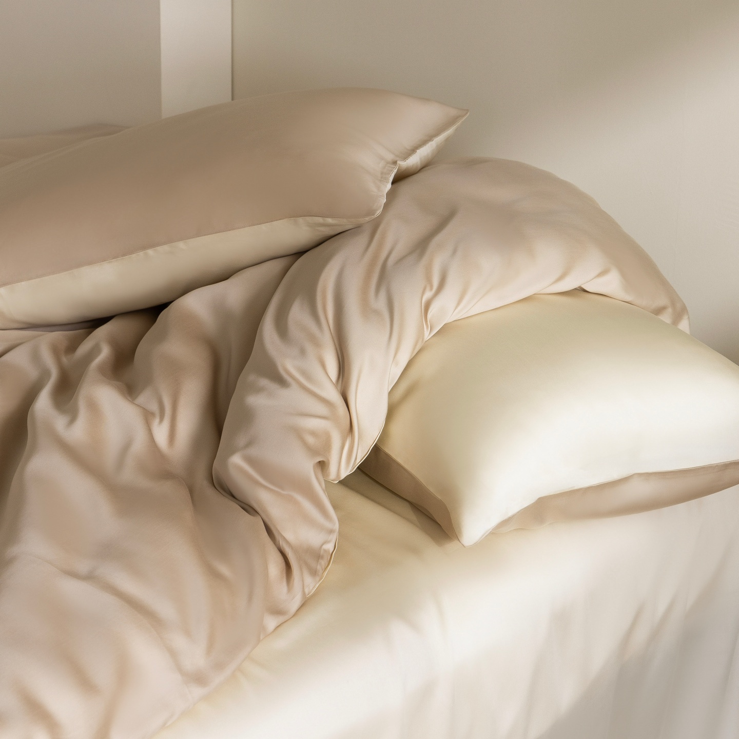 商品名称:时亿家居 2026春夏新款60天丝-丝颜悦色系列-被套四件套 晨阳咖