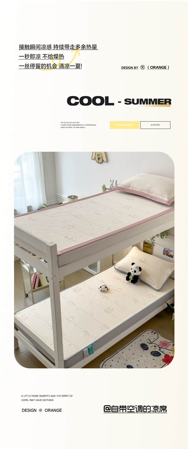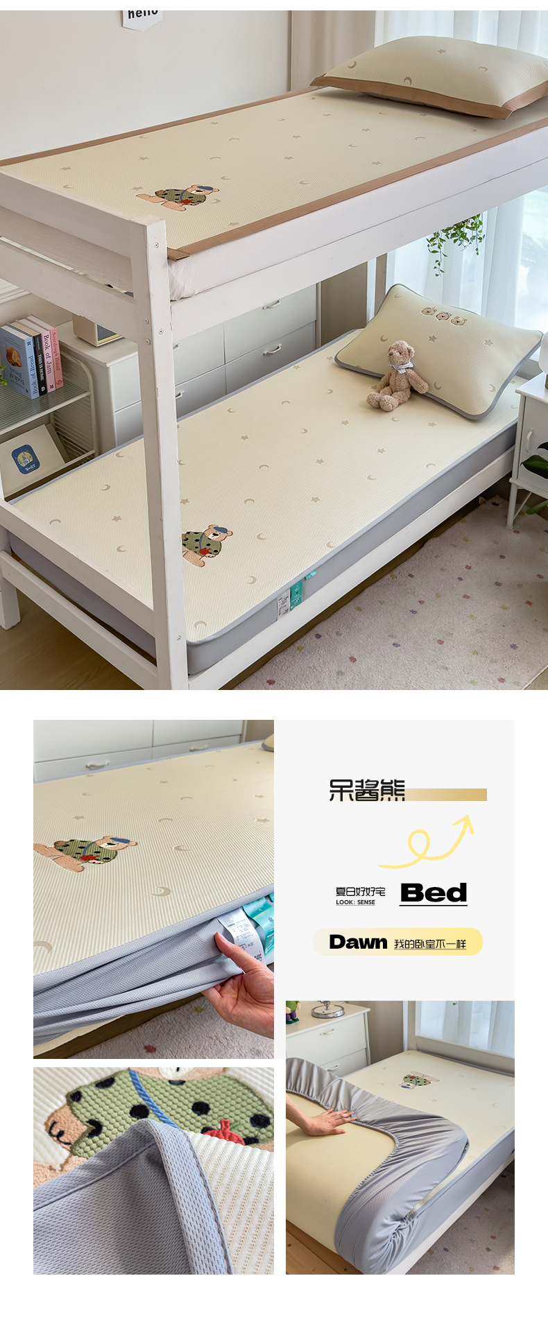 商品名称:凯罗 2026新款A类凉豆豆学生宿舍用床席可水洗凉席席子床笠款 敦敦熊-粉-床笠款