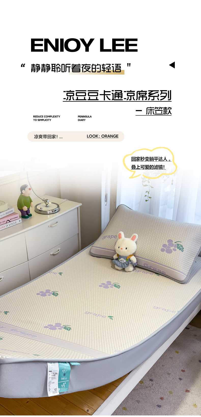 (总)凯罗 2026春夏凉豆豆小红书爆款A类乙纶PE凉豆豆床席款可水洗床席,波点草莓-粉,布丁萌萌熊,小萌狗,小南瓜-桔