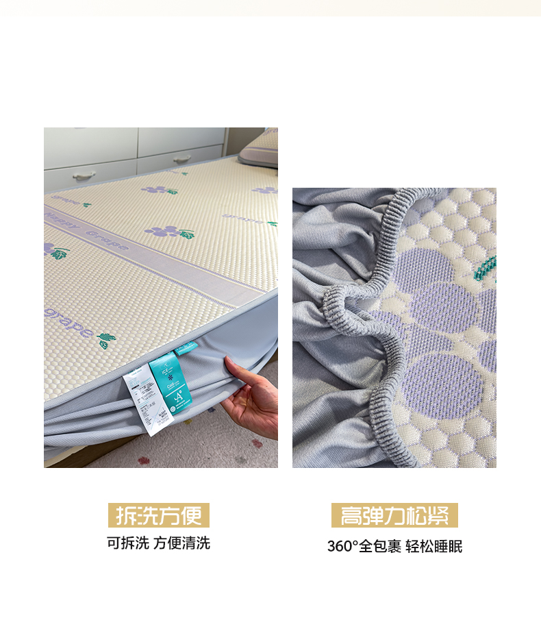 商品名称:凯罗 2026新款A类凉豆豆学生宿舍用床席可水洗凉席席子床笠款 紫气东来-床笠款