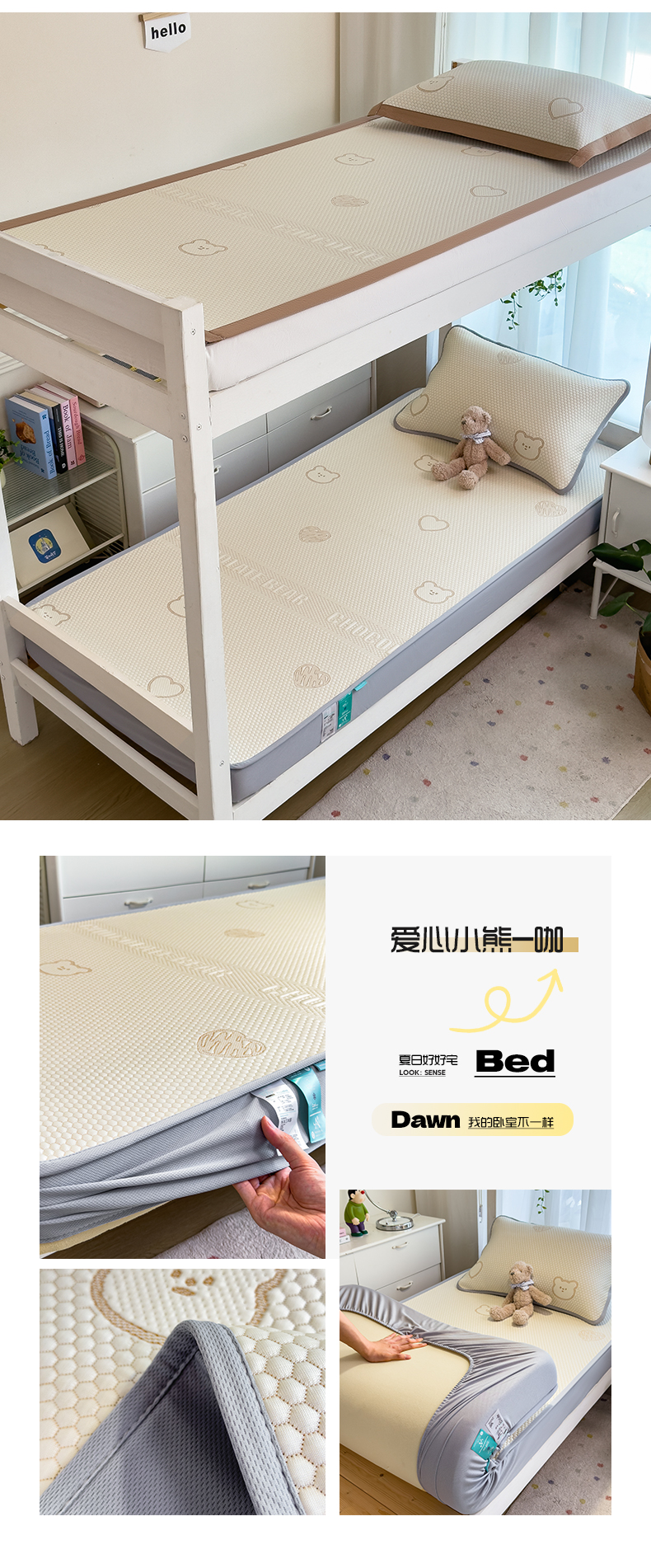 (总)凯罗 2026新款可水洗凉豆豆夏季席子凉席三件套,Hello--熊,爱心小熊--浅粉,敦敦熊--浅粉,敦敦熊--蓝灰,爱心小熊-咖,花儿朵朵--浅粉
