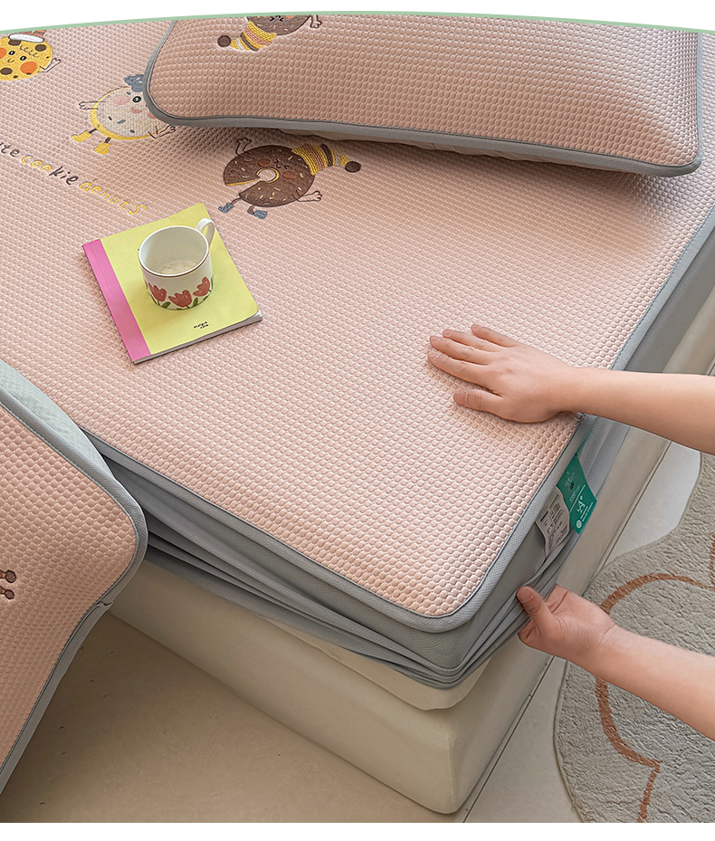 (总)凯罗 2026新款可水洗凉豆豆夏季席子凉席三件套,Hello--熊,爱心小熊--浅粉,敦敦熊--浅粉,敦敦熊--蓝灰,爱心小熊-咖,花儿朵朵--浅粉