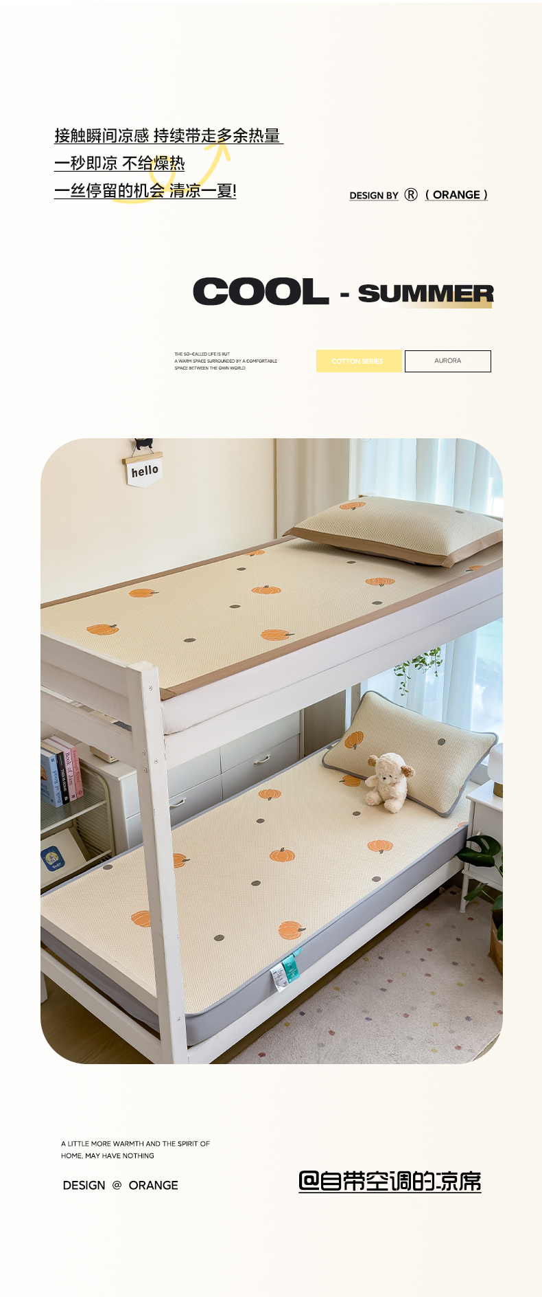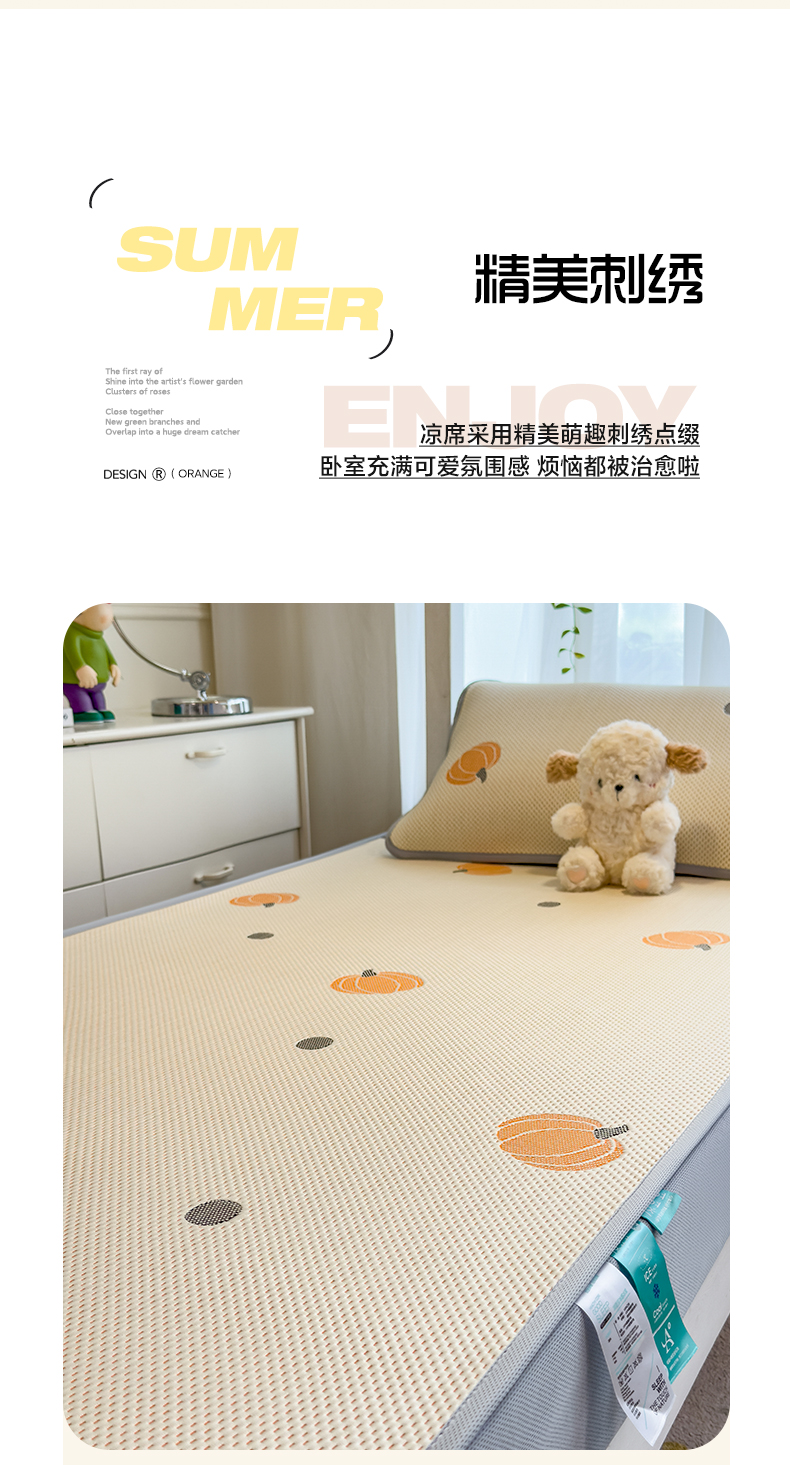 商品名称:凯罗 2026新款A类凉豆豆学生宿舍用床席可水洗凉席席子床席款 小南瓜-桔-床席款