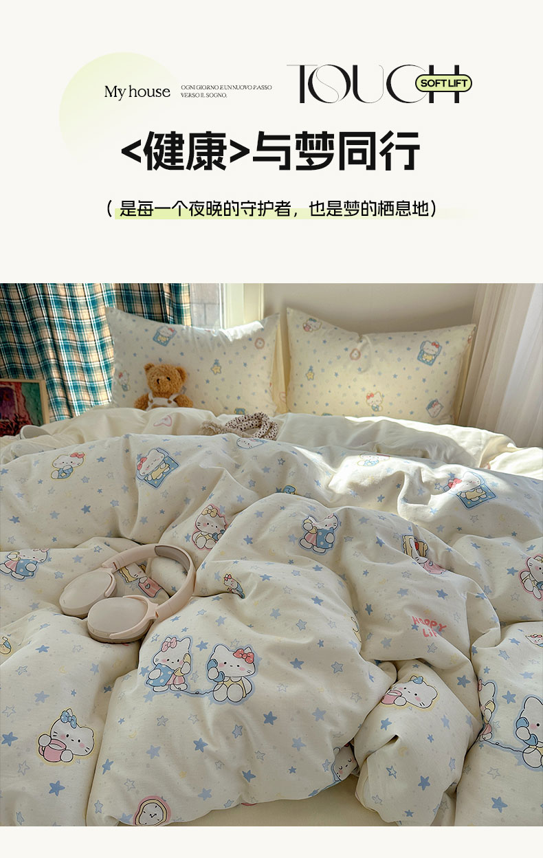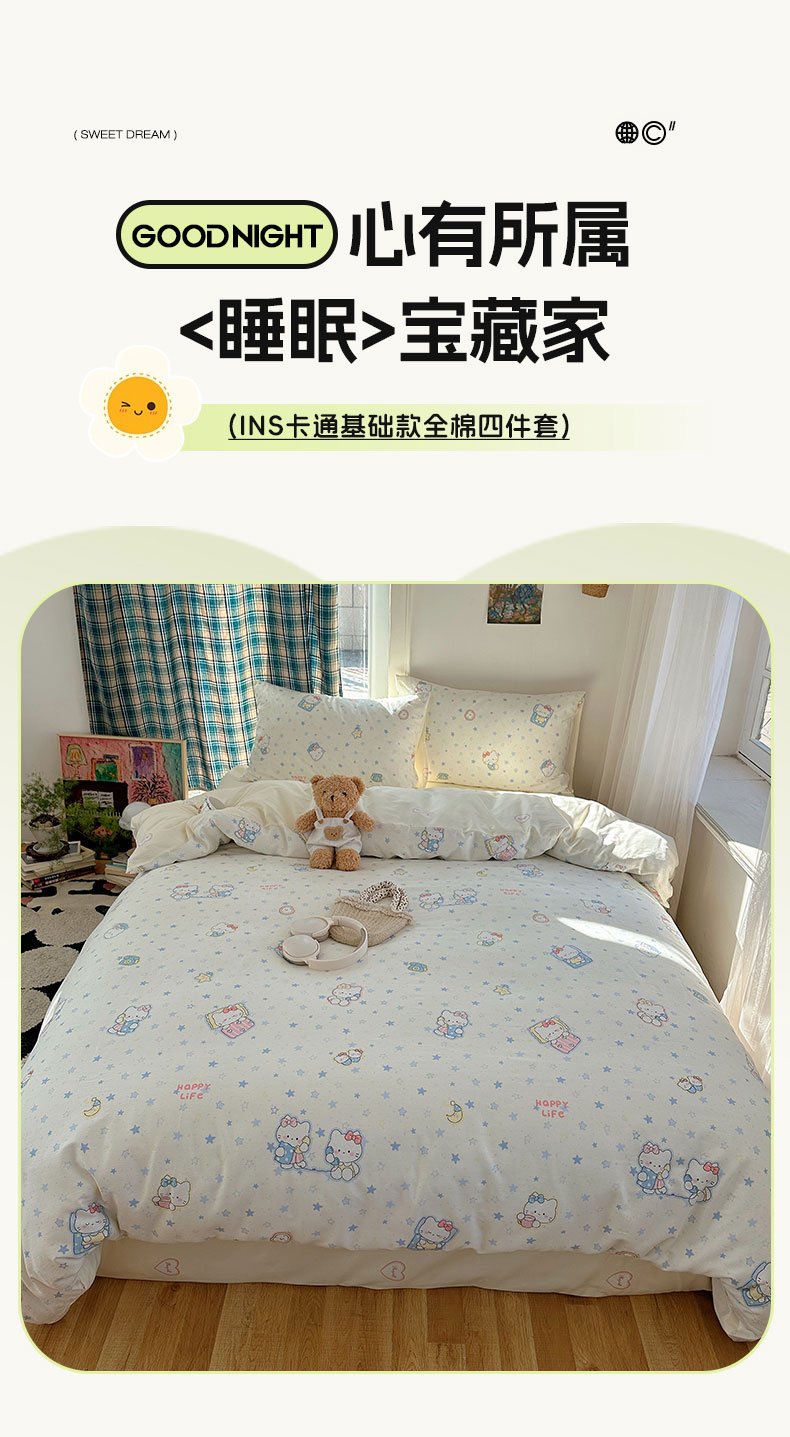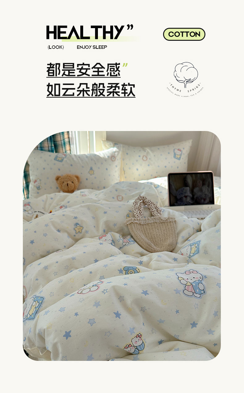 六巷胡同 2026新款INS减龄可爱风卡通40支13070全棉四件套(第三系列) 蓝星电话喵