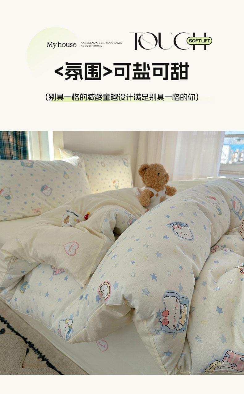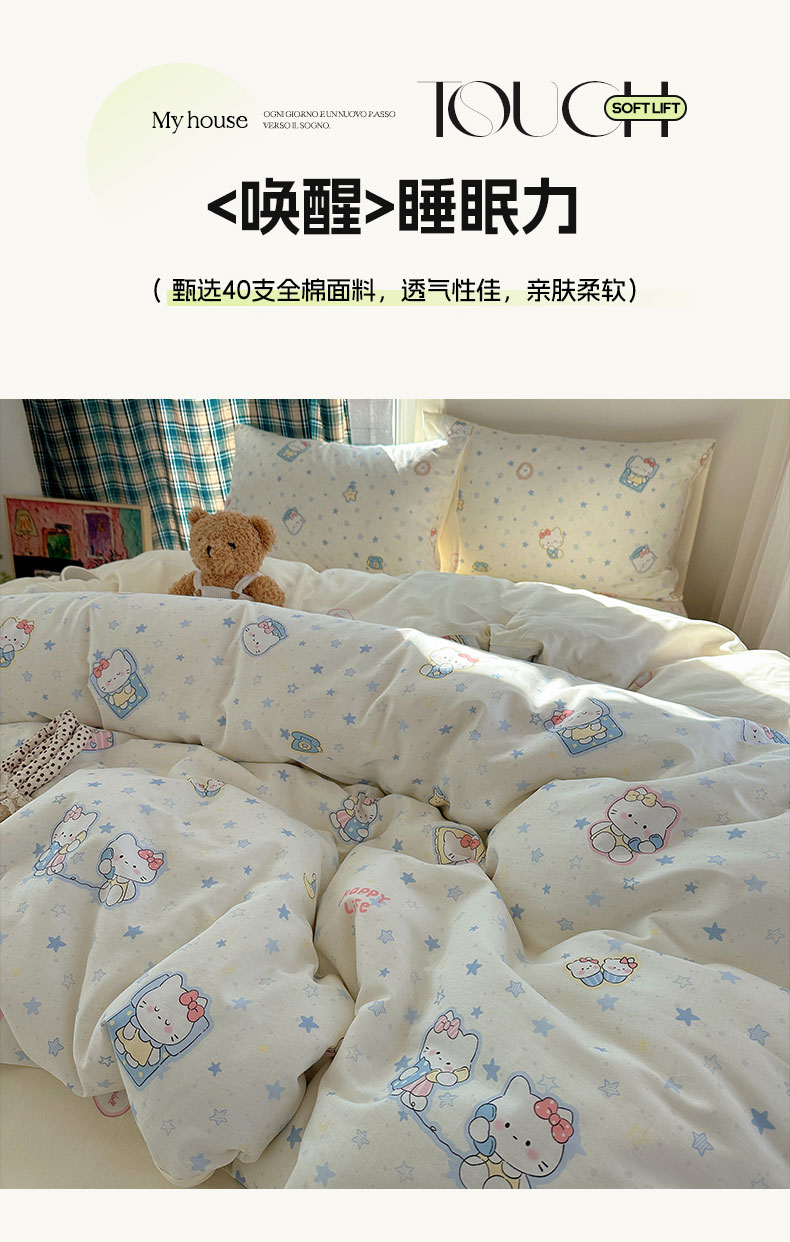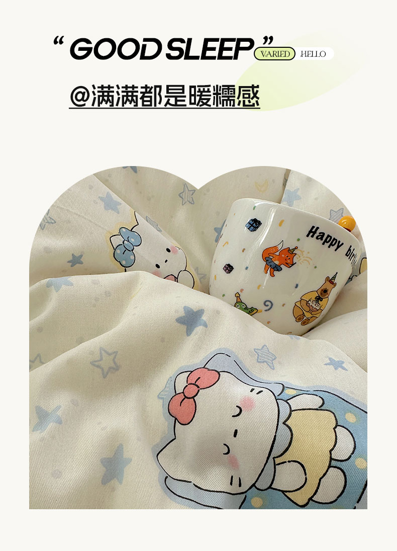 商品名称:六巷胡同 2026新款INS减龄可爱风卡通40支13070全棉四件套(第三系列) 蓝星电话喵