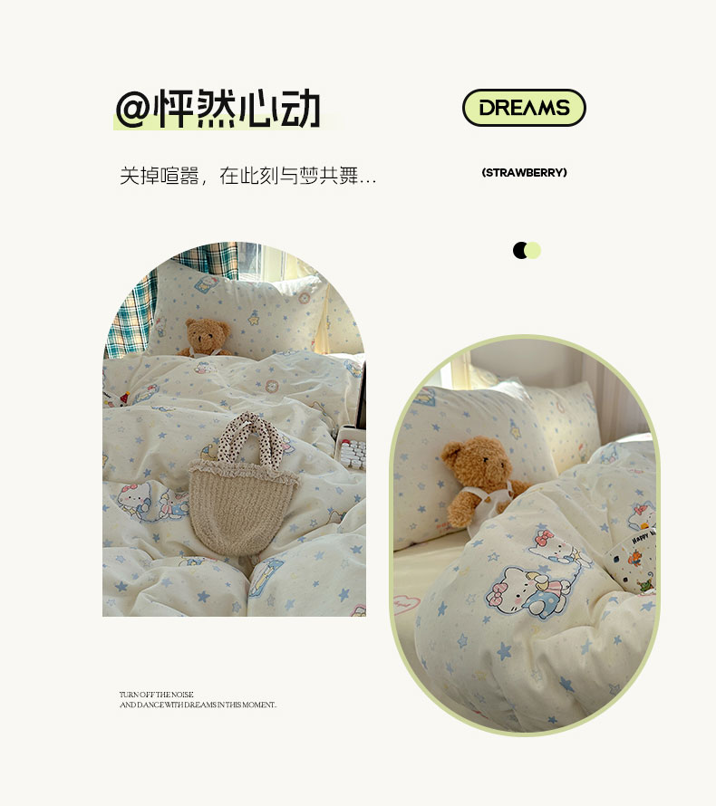 (总)六巷胡同 2025新款INS卡通童趣混搭风全棉四件套第二系,混搭-蛋糕围兜熊,混搭-奶油酣睡熊,混搭-奈斯羞羞狗,混搭-小蓝格甜点,混搭-雪糕哈皮熊,混搭-月亮睡睡熊