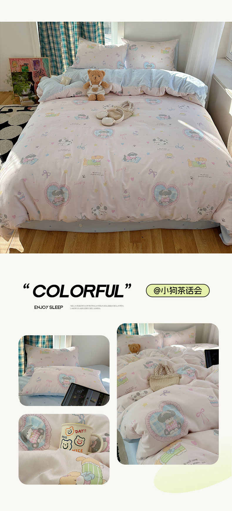 (总)六巷胡同 2025新款 INS减龄可爱风卡通全棉四件套第五系(森林音乐会系列),波点嘟嘟猫,点点面包犬,调皮蔷薇狗,哈喽泡芙猫,蓝格插画犬,森林音乐会