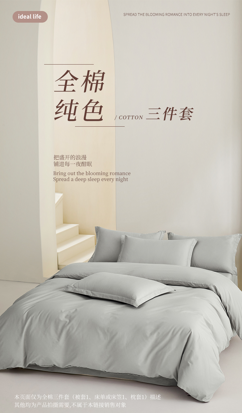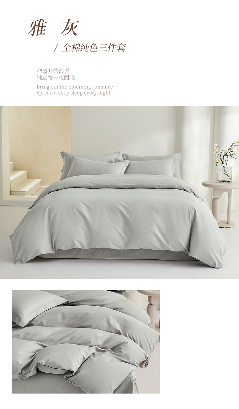 当前位置: 91家纺网 > 商品网购 > 床品套件 > 三件套 > 元元家居(元元被业) 2026新款全棉纯棉13372纯色三件套系列 雅灰
