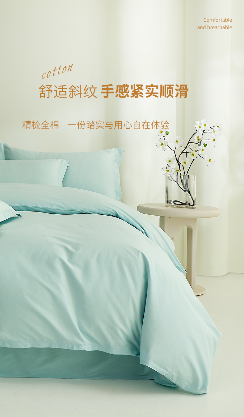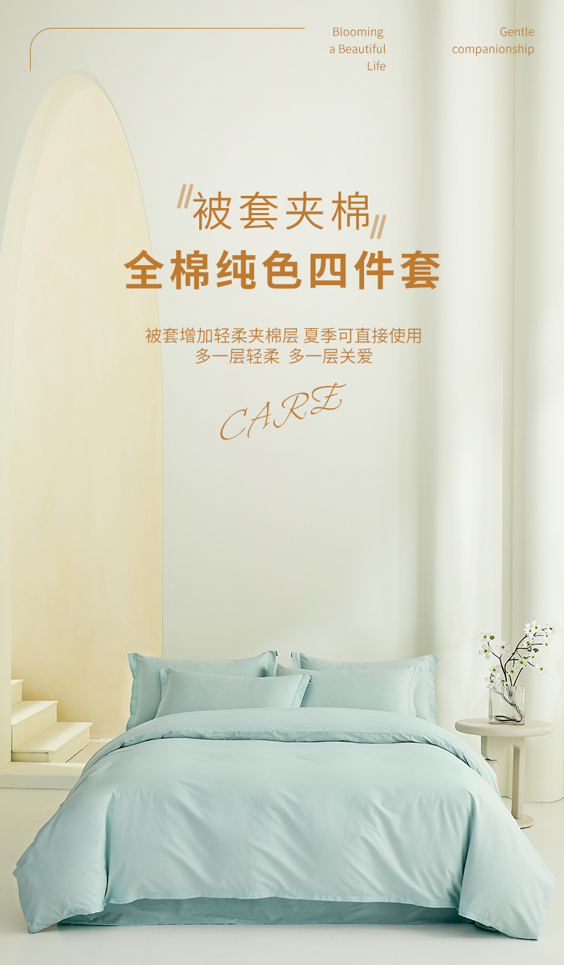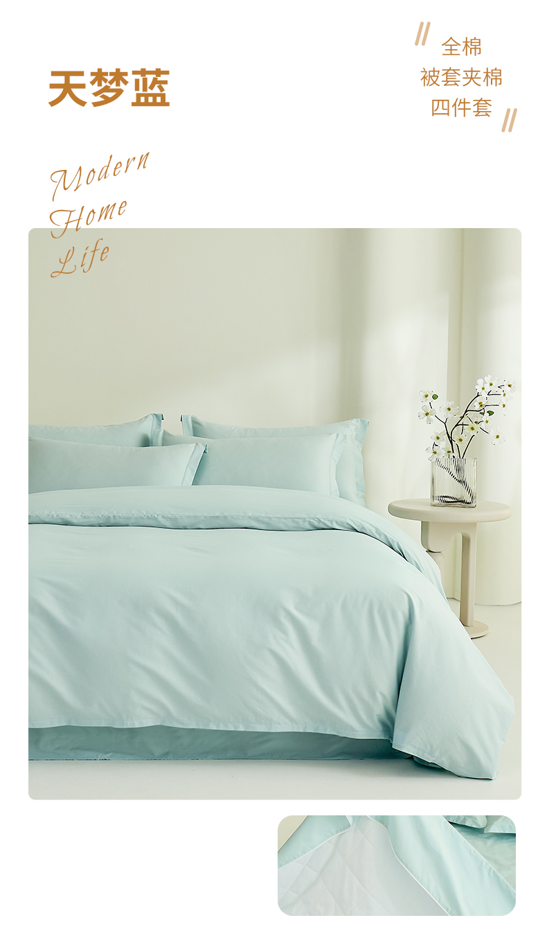 当前位置: 91家纺网 > 商品网购 > 床品套件 > 四件套 > 全棉普通四件套 > 元元家居(元元被业) 2026新款全棉纯棉13372纯色被套夹棉款四件套系列 天梦蓝